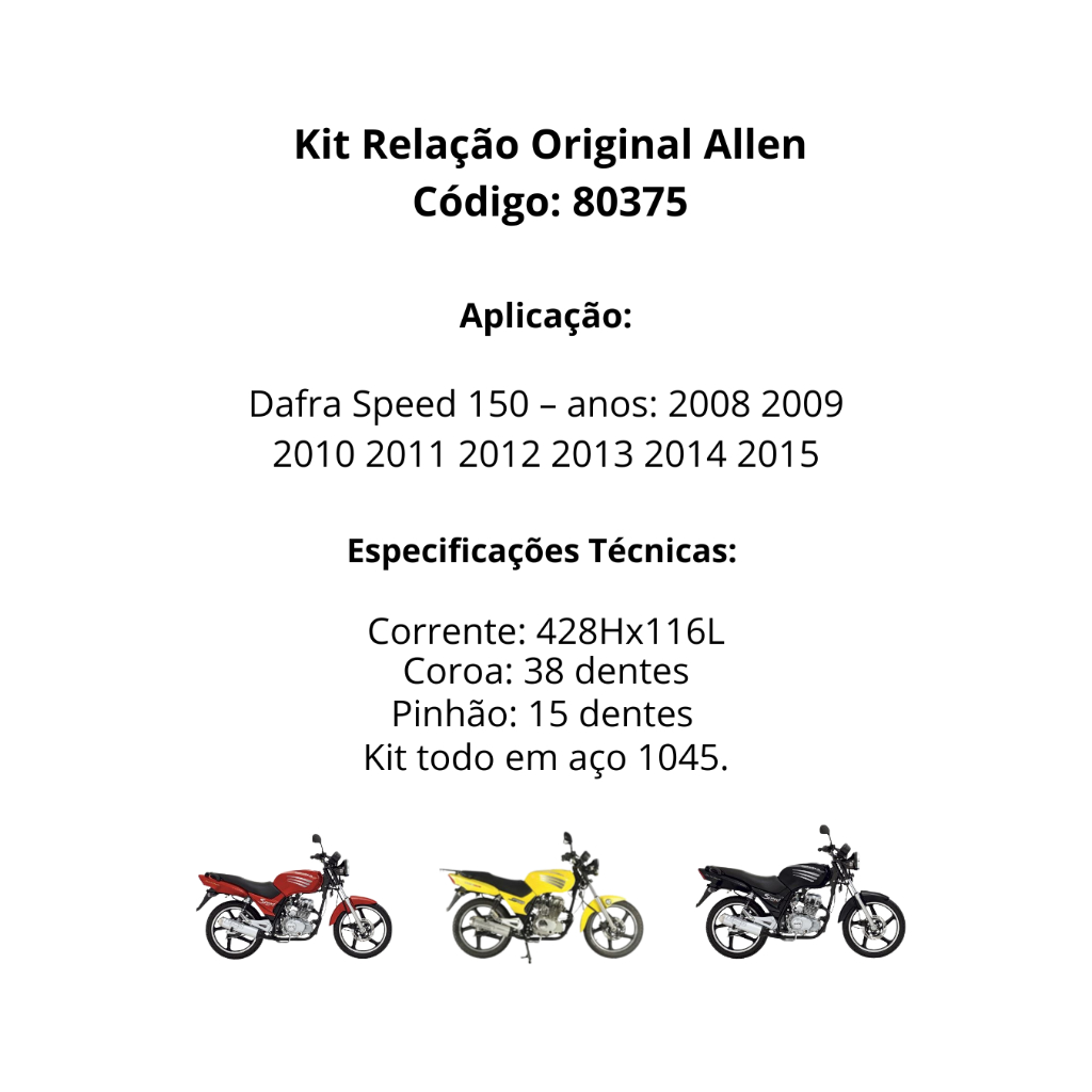 Kit Relação Transmissão Dafra Speed 150 2008 2009 2010 2011 2012 2013 2014 2015 Original Allen