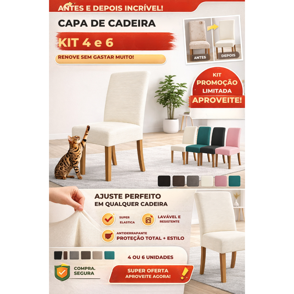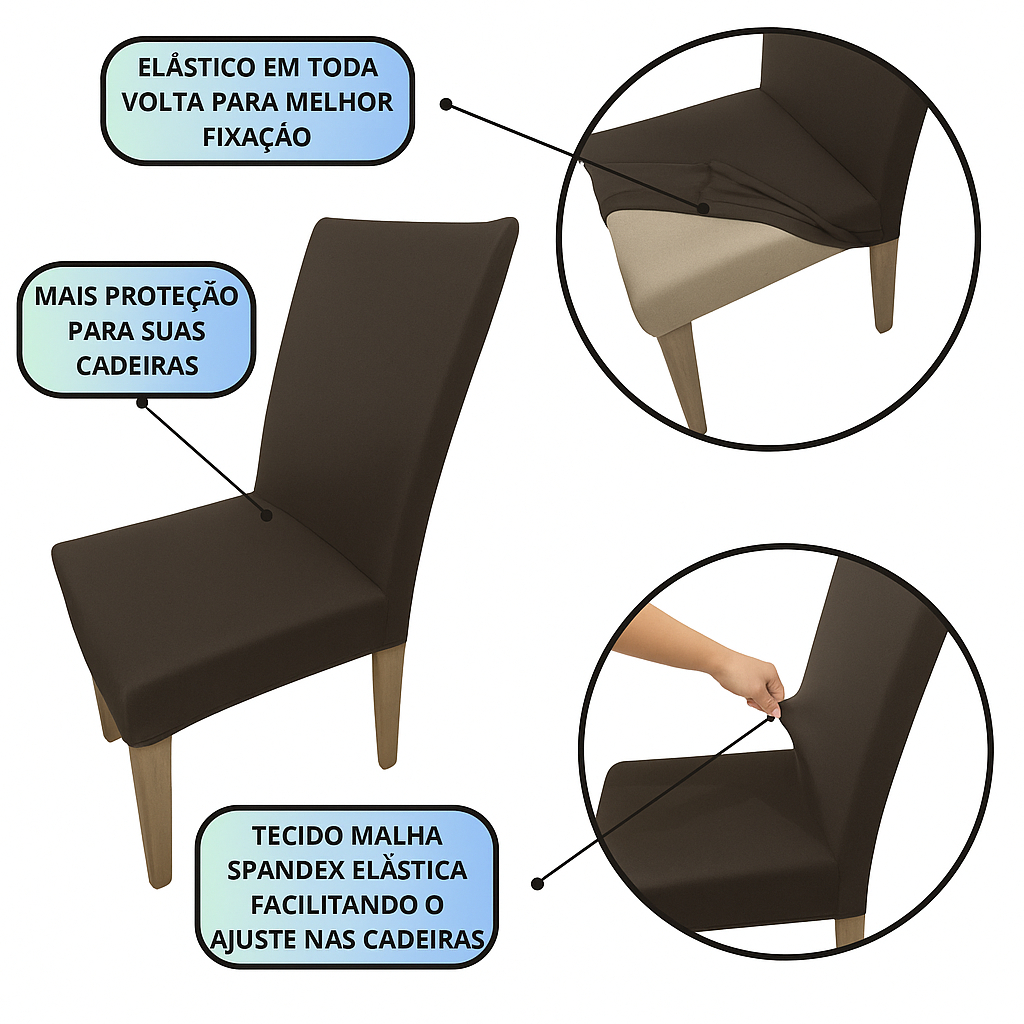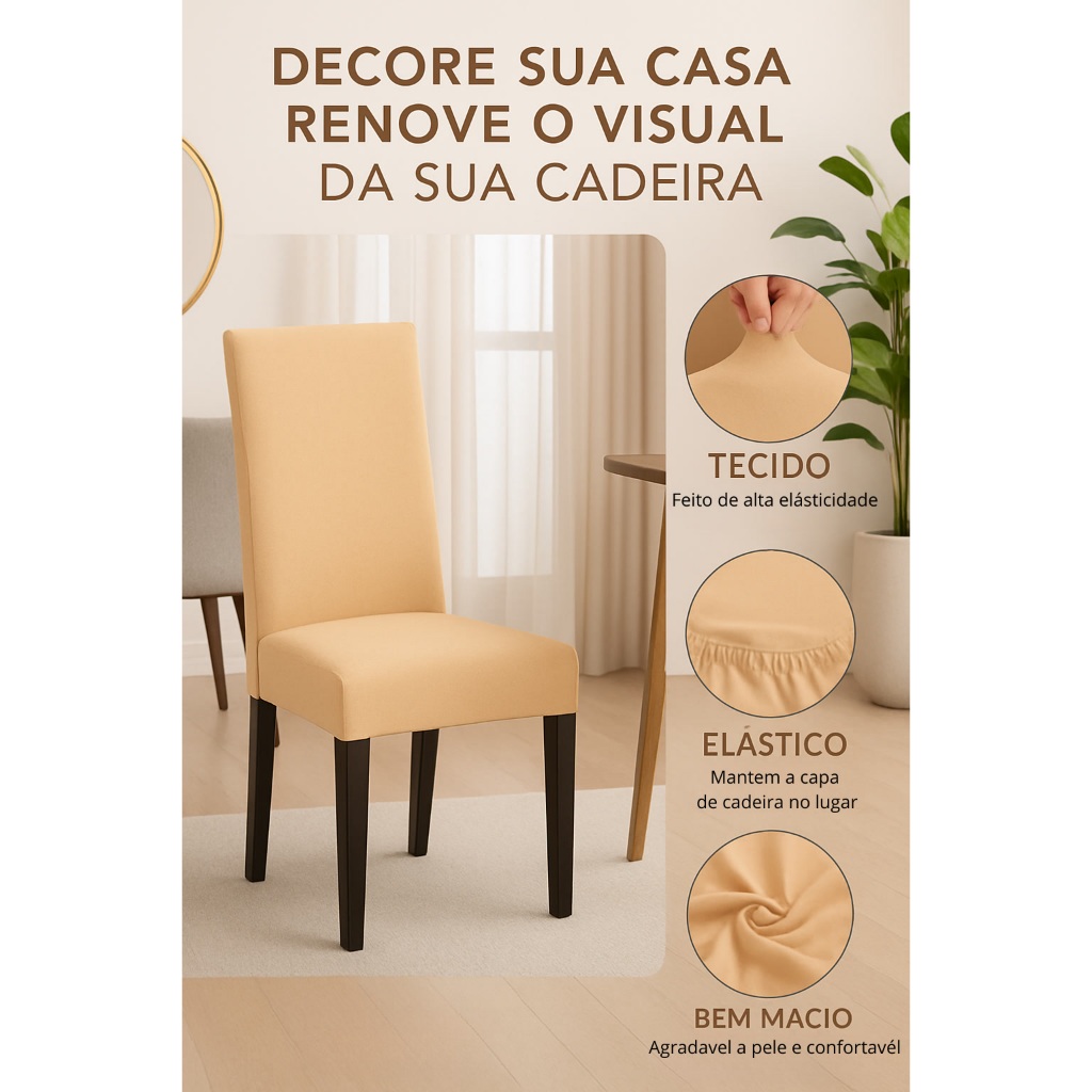 Capa De Cadeira Kit 4 e 6 Lugares Spandex Elástica Ajustável Lavável
