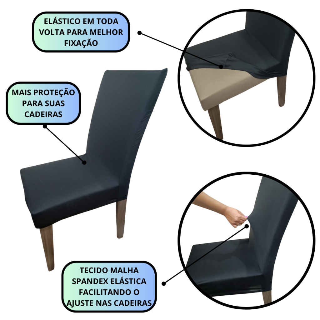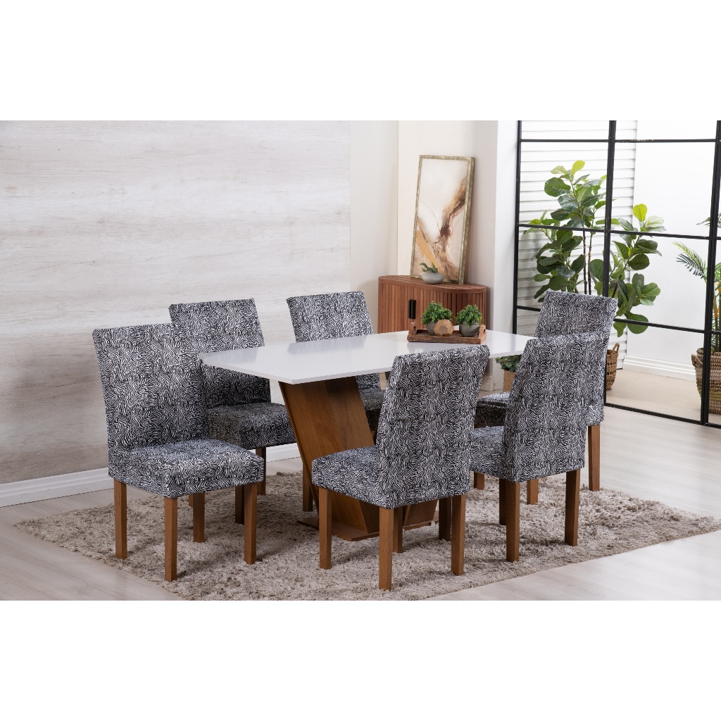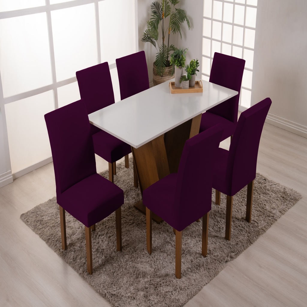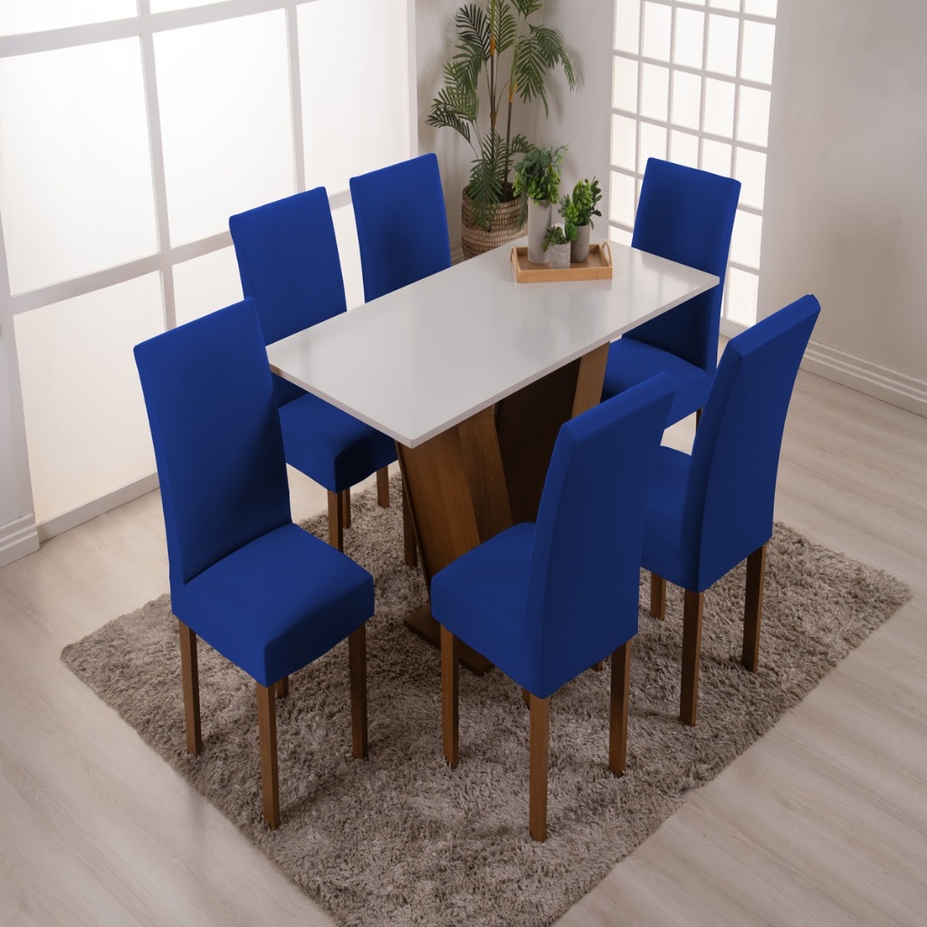 Kit Capa De Cadeira Jantar 6 Lugares Em Malha Com Elástico