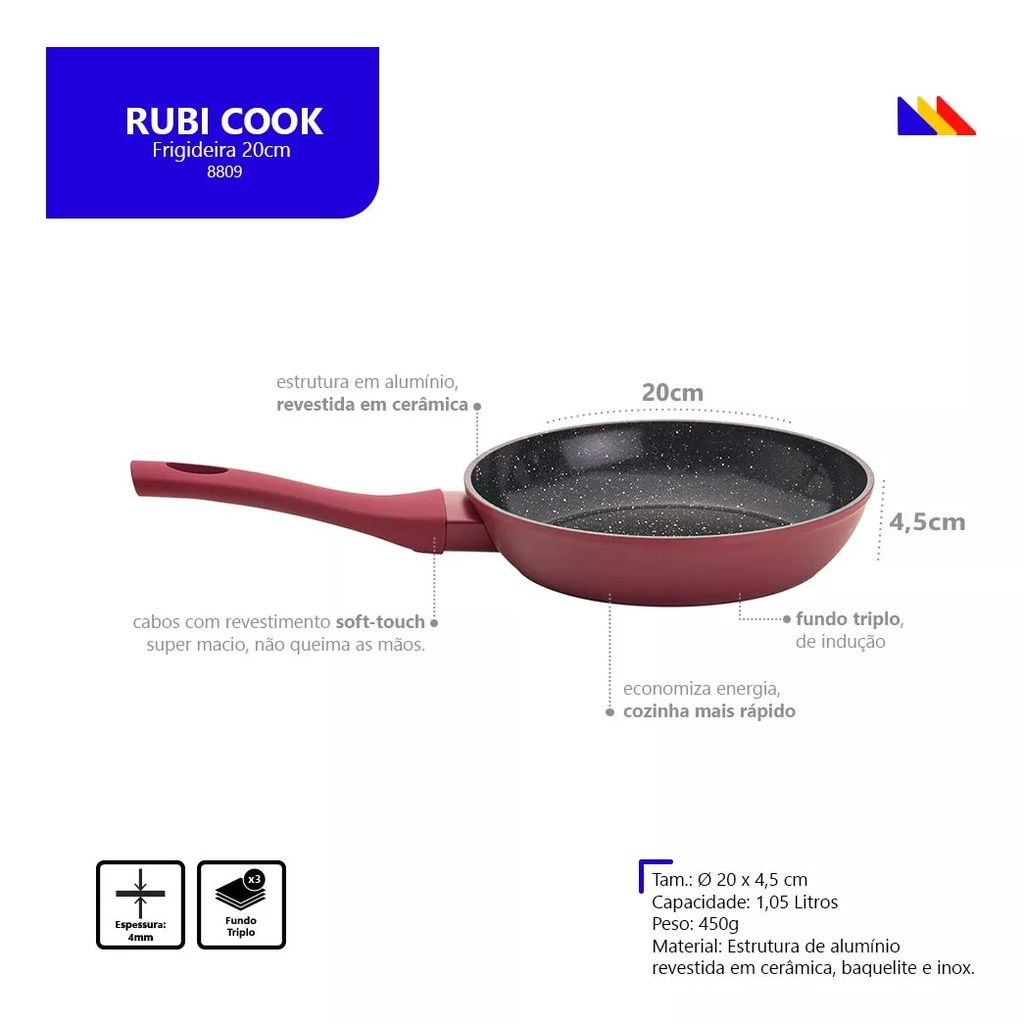 Frigideira Ceramica Antiaderente Fundo Triplo Indução 20cm Mimo Style Linha Rubi Cook Panela Avulsa Multiuso Para Ovo Tapioca Omeleteira