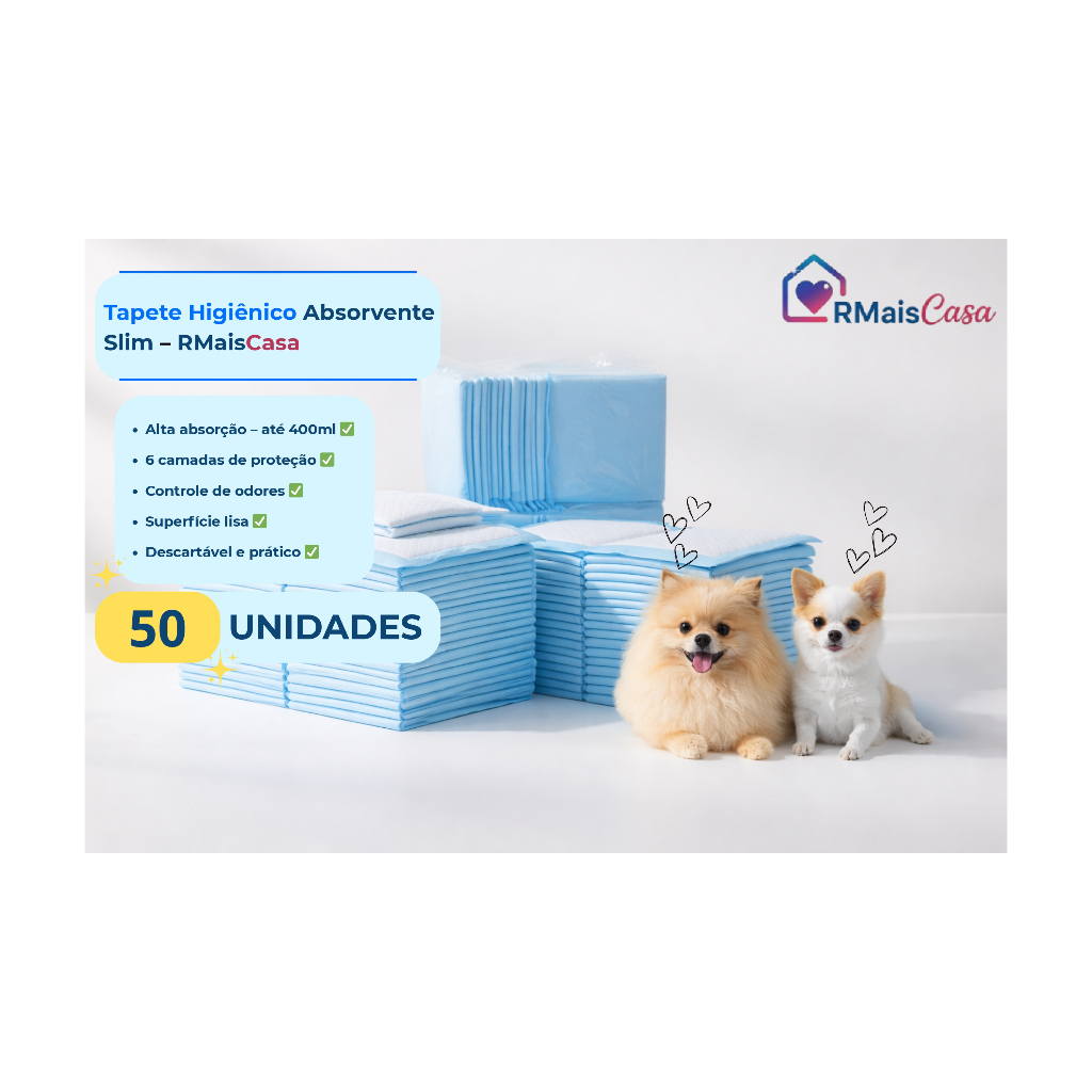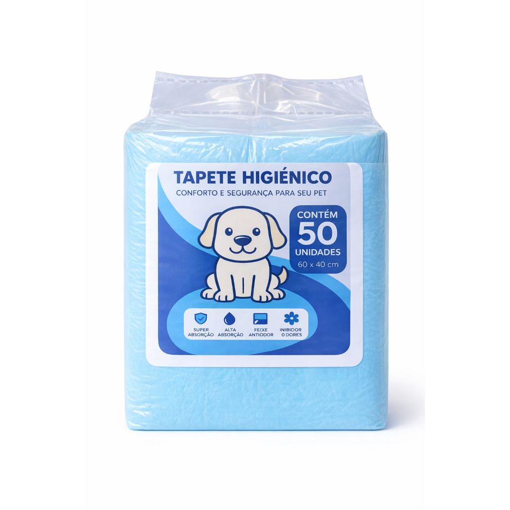 Tapete Higienico Para Caes Descartavel 50 Unidades Pequeno Slim 60x40cm Absorve Até 400ml