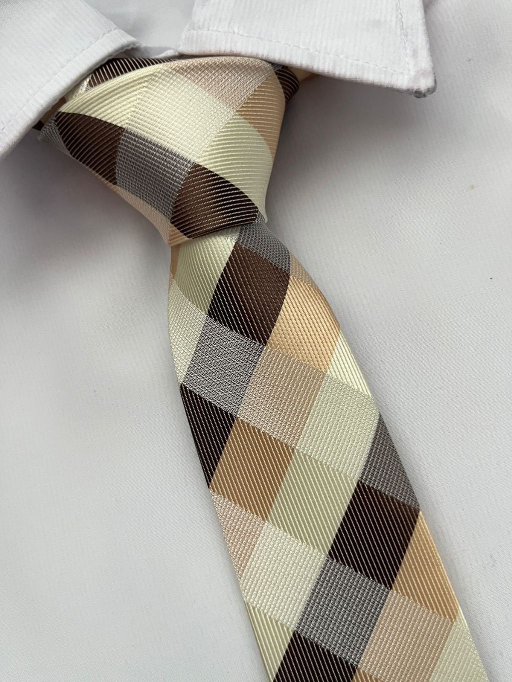 Gravata Slim Xadrez Marrom e Bege
