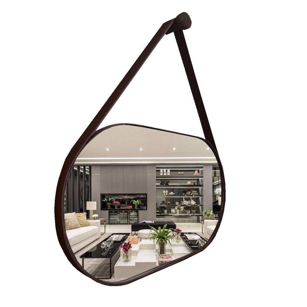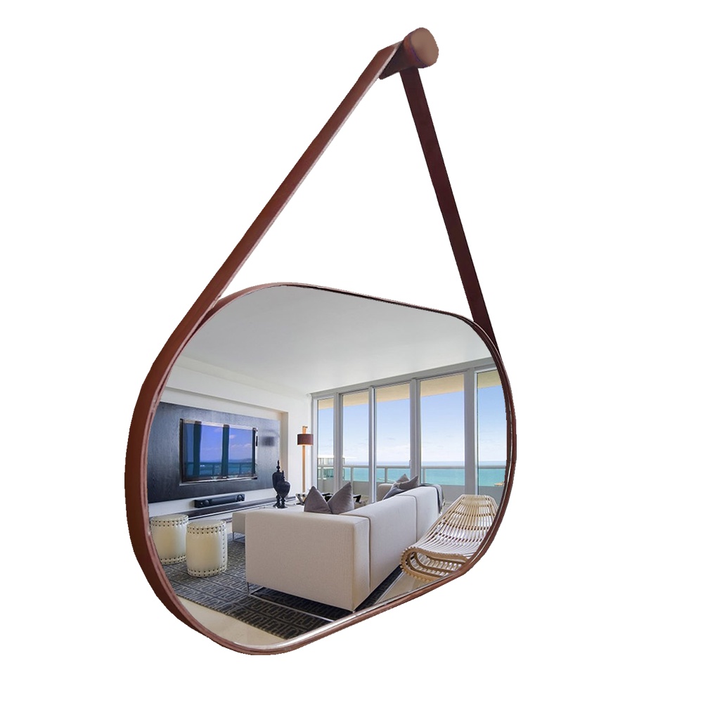 Espelho Oval Lavabo com Alça Horizontal Couro