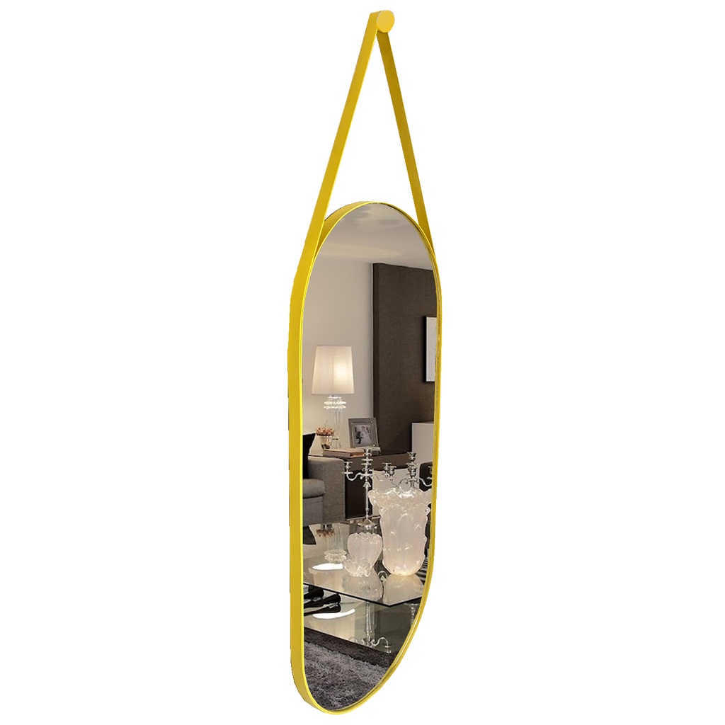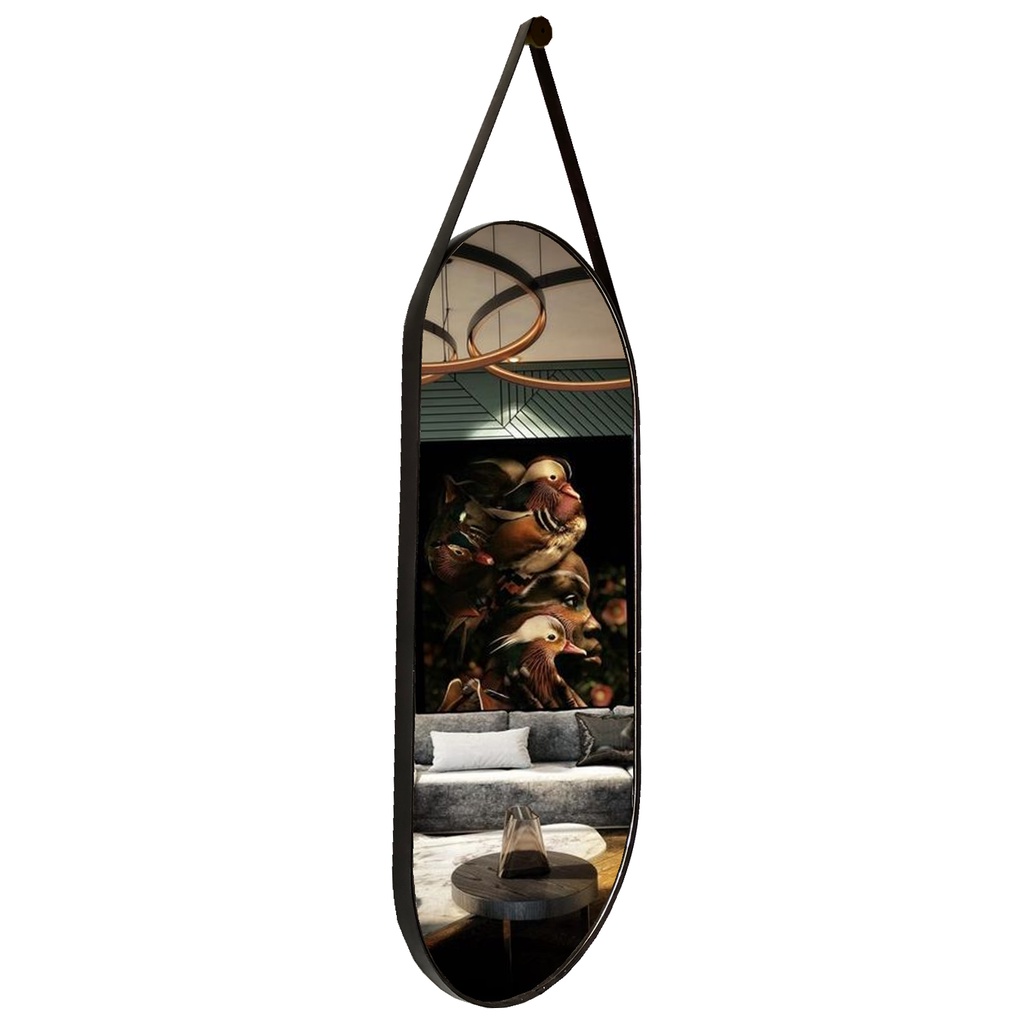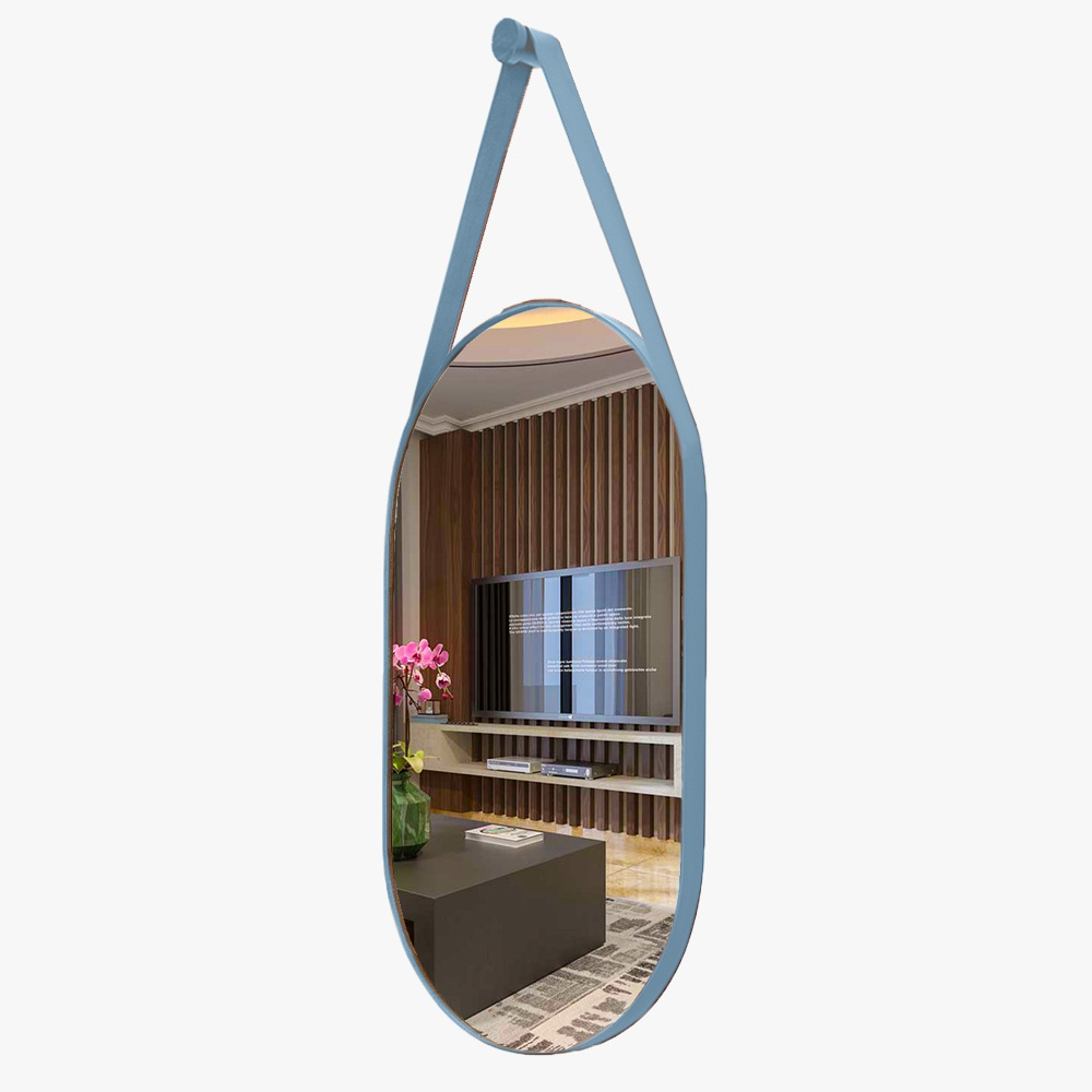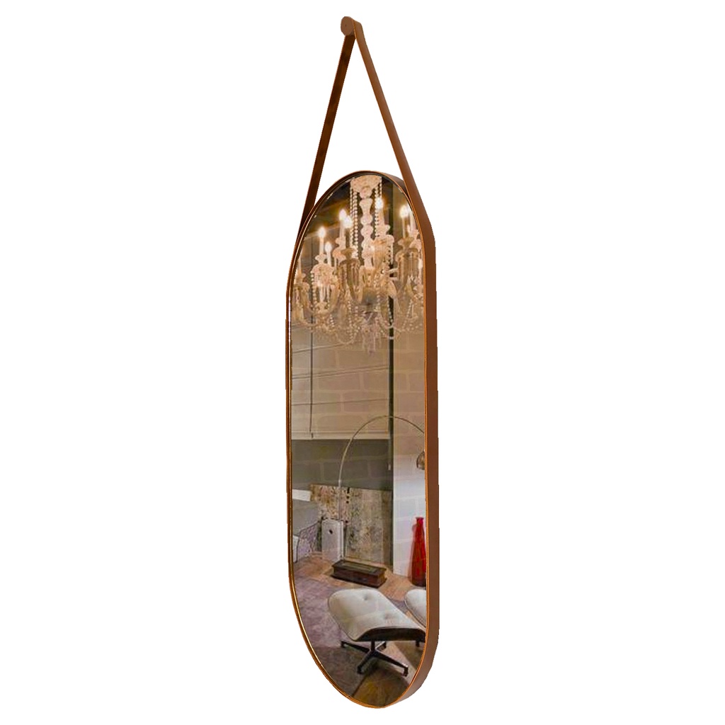 Espelho Oval c/Alça Grande Couro