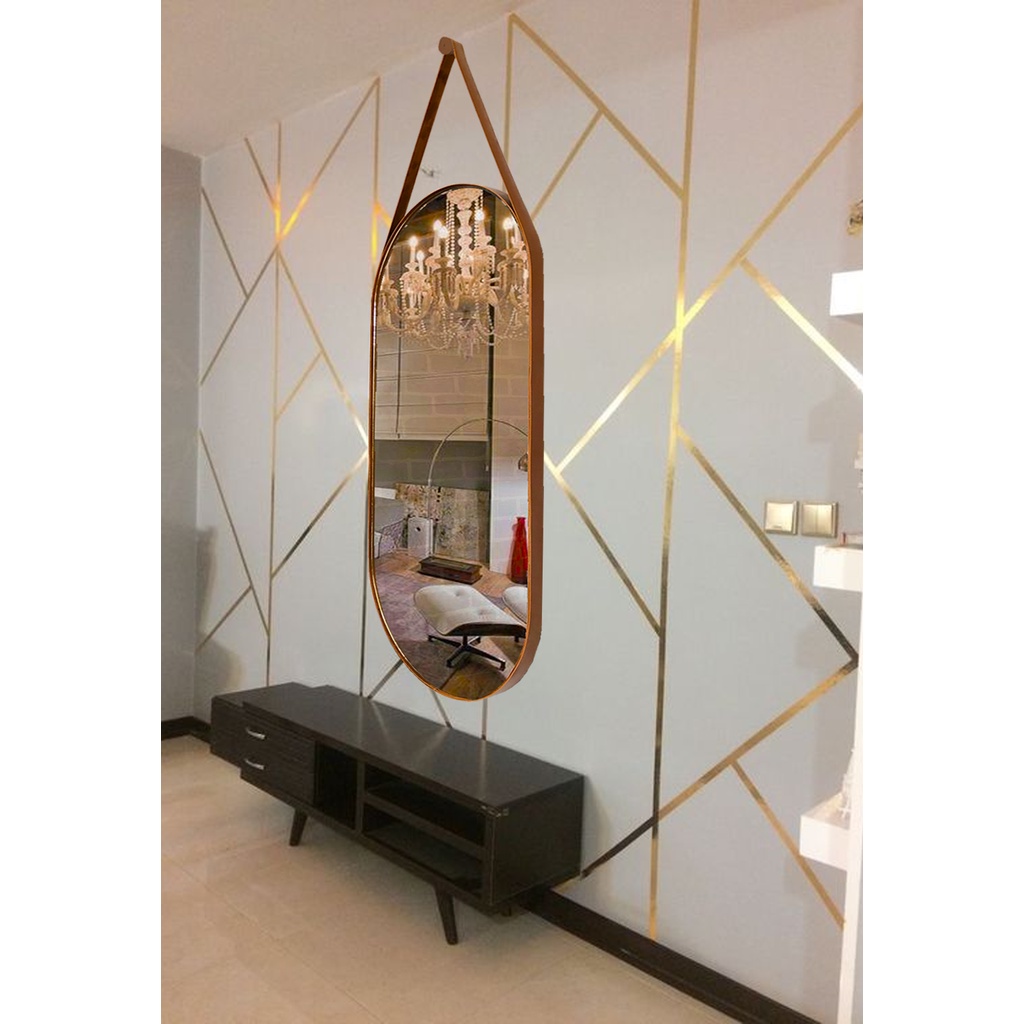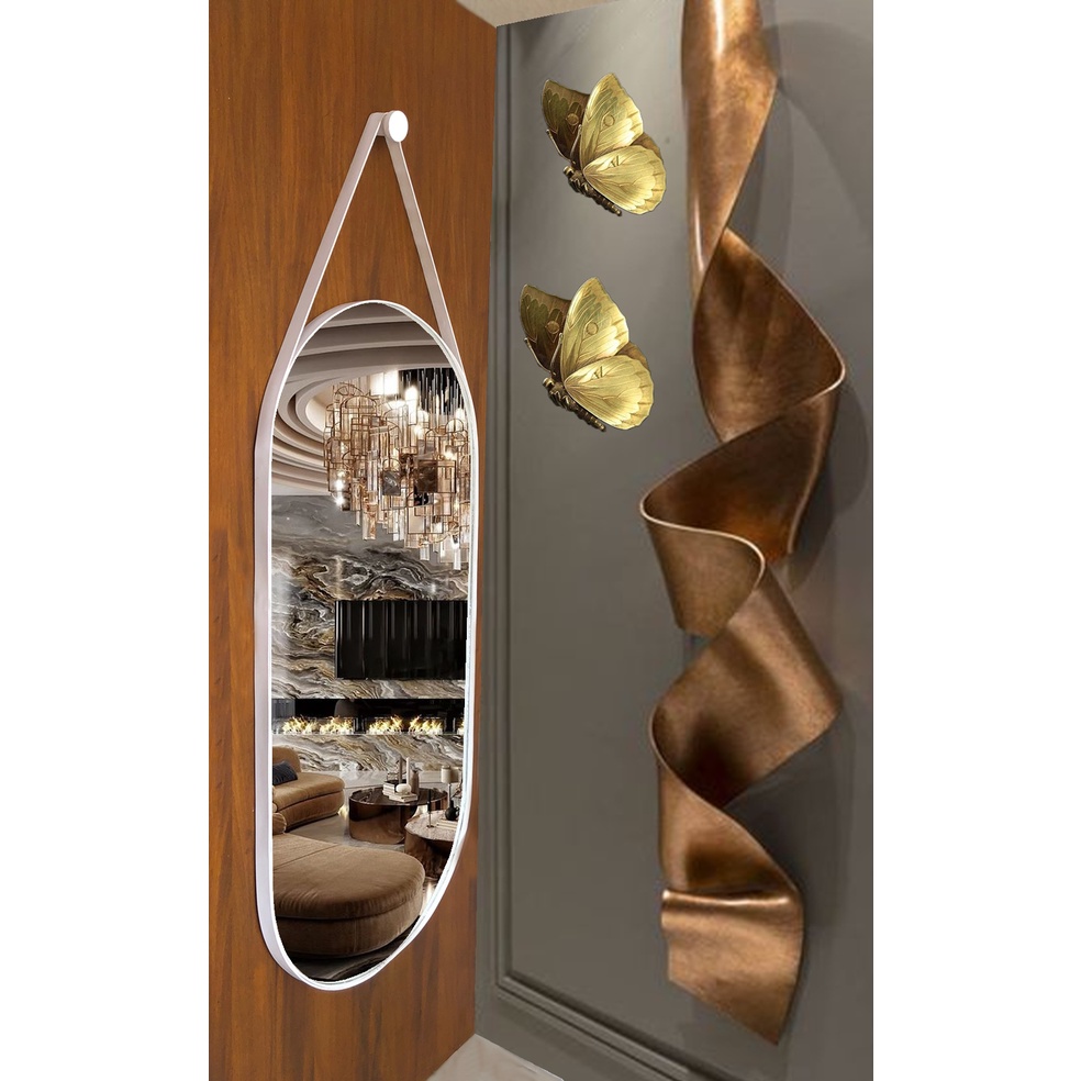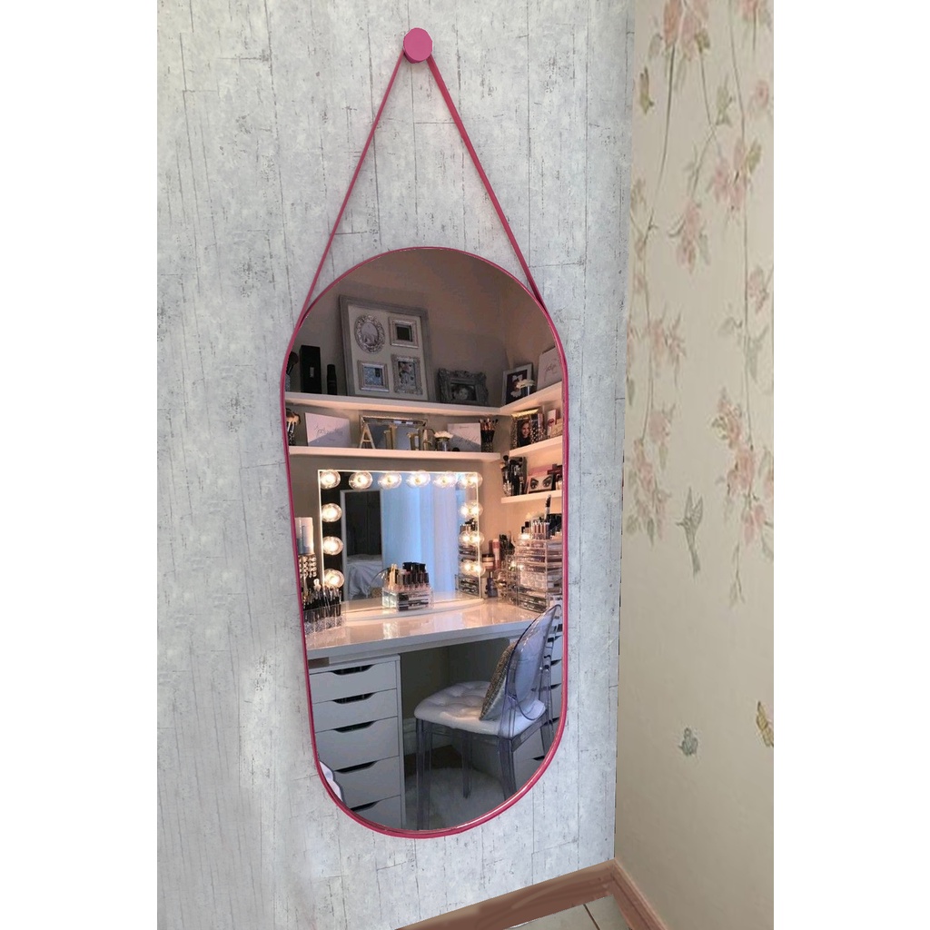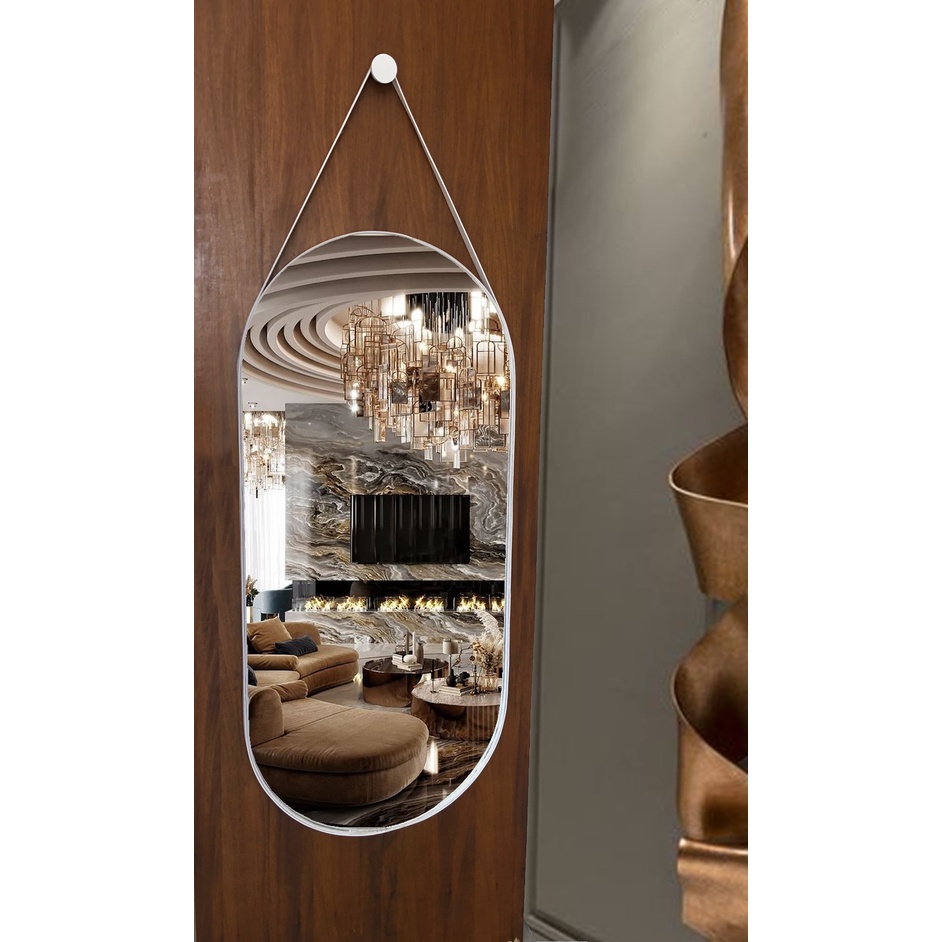 Espelho Oval c/Alça Grande Couro