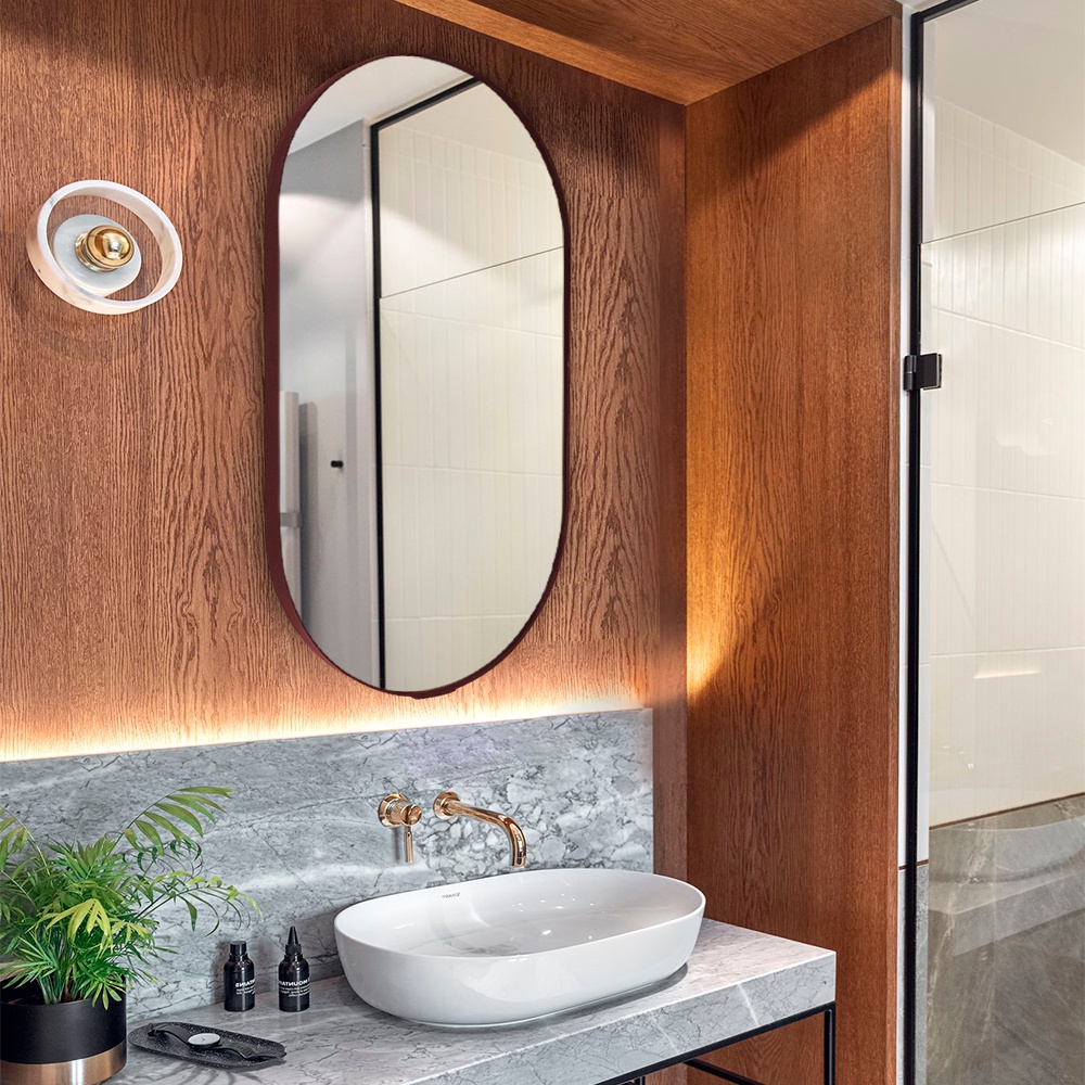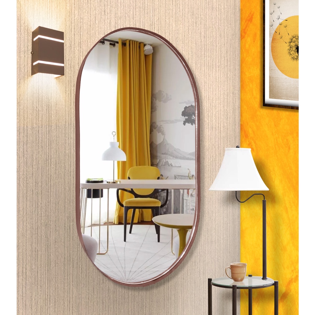 Espelho Oval Couro Moderno 60X30 cm