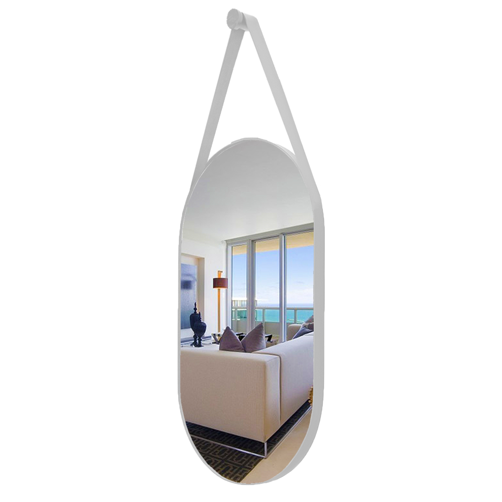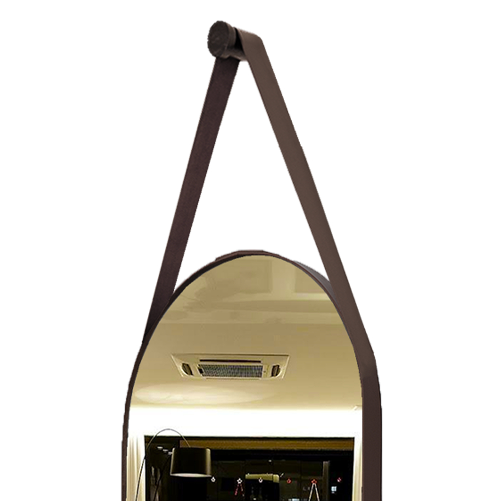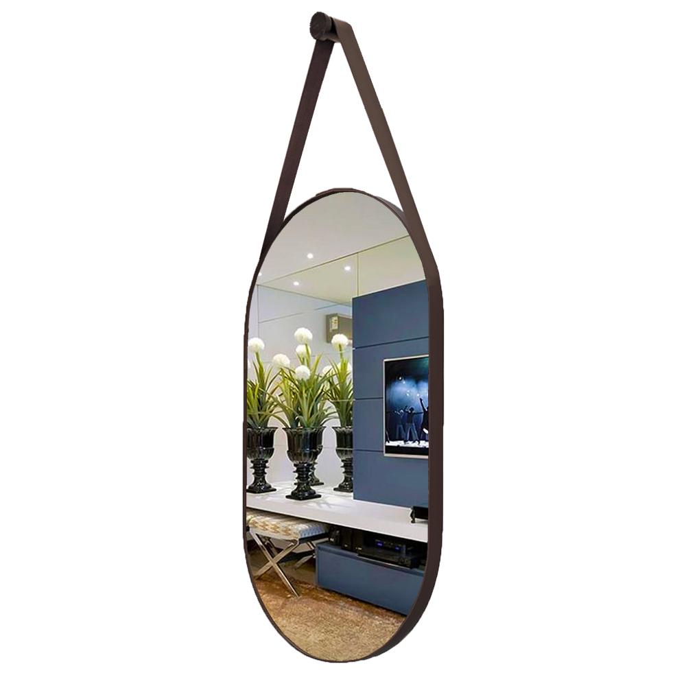 Espelho com Alça 76x30 Oval Couro Banheiro