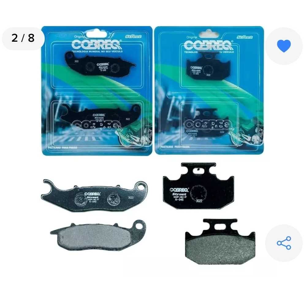 Kit Pastilha Freio Dianteira+Traseira COBREQ Yamaha Fazer250 2016 a 2023 - Fz25 2018 A 2025 PROMOÇÃO