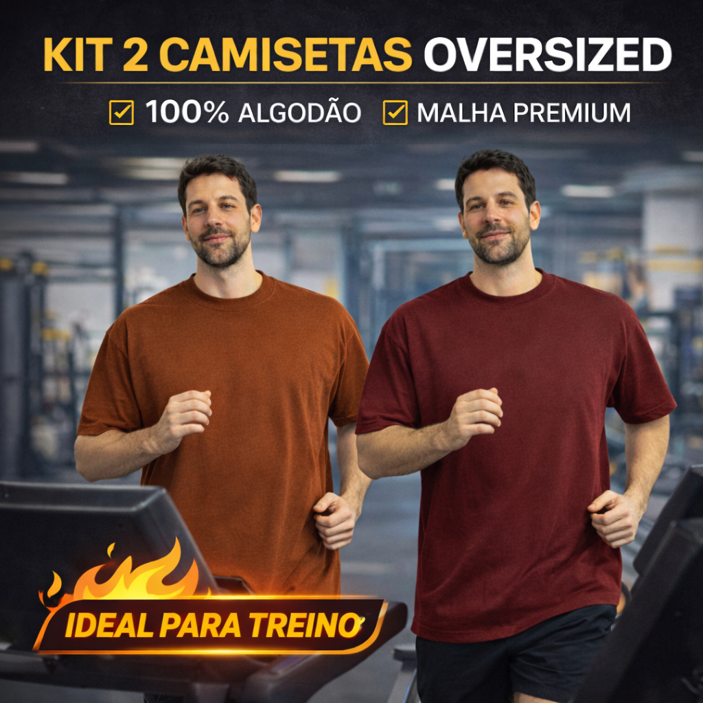 Kit 2 Camisetas Masculinas OverSized Academia e Treinos 100% Algodão P ao G1