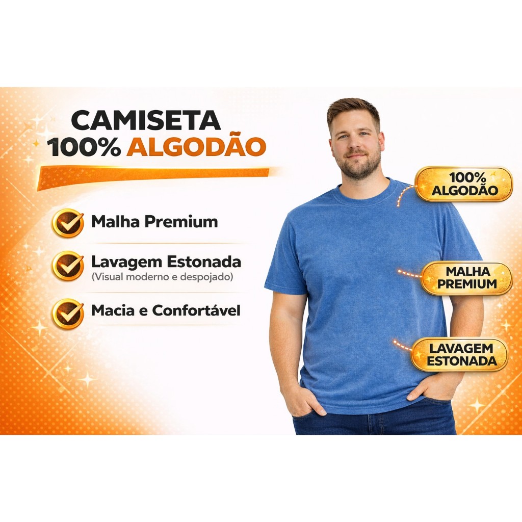 Kit 3 Camisetas Plus Size Masculina 100% algodão Estonada Lisa