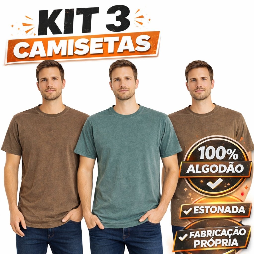 Kit 3 Camisetas Estonadas Masculinas Premium 100% algodão P ao GG