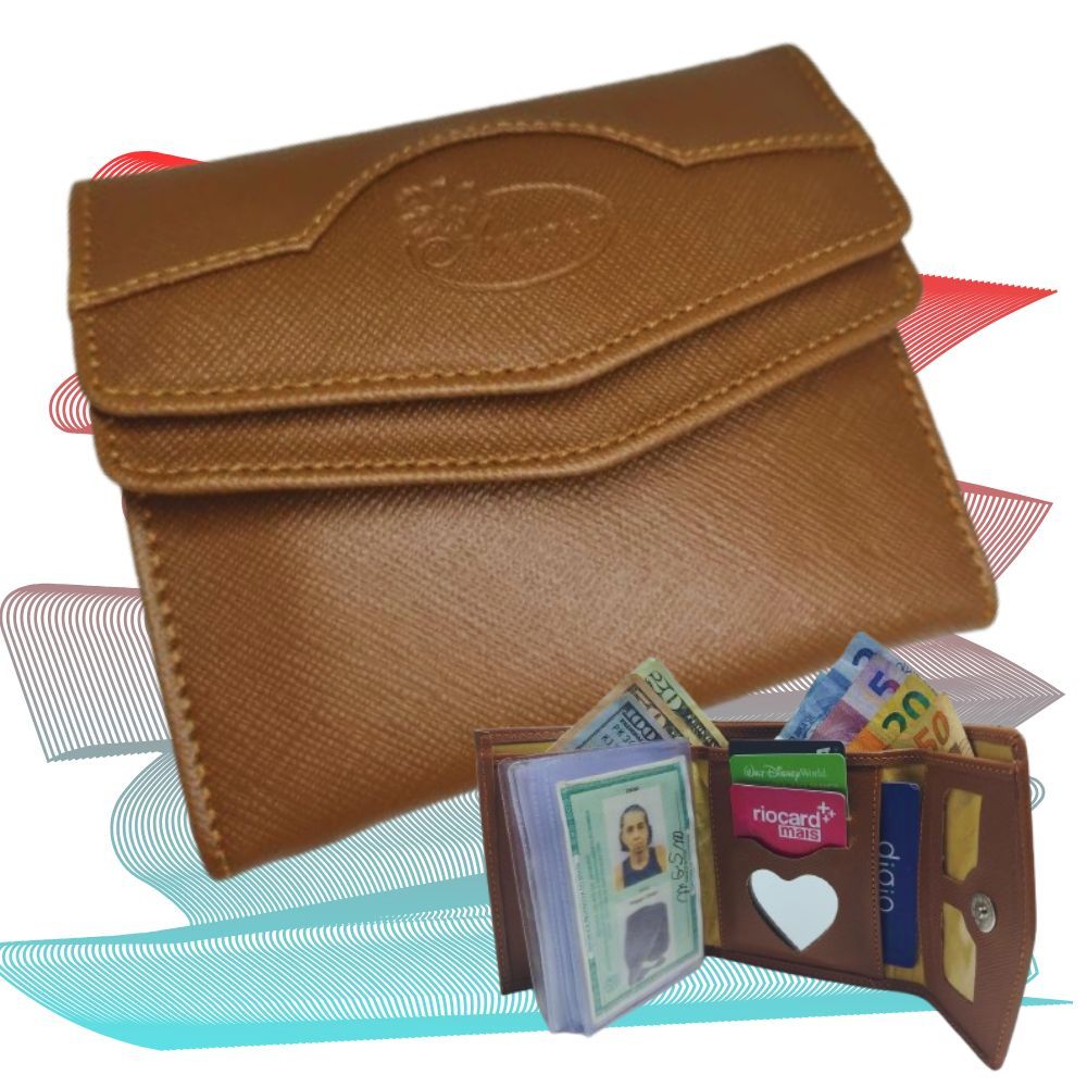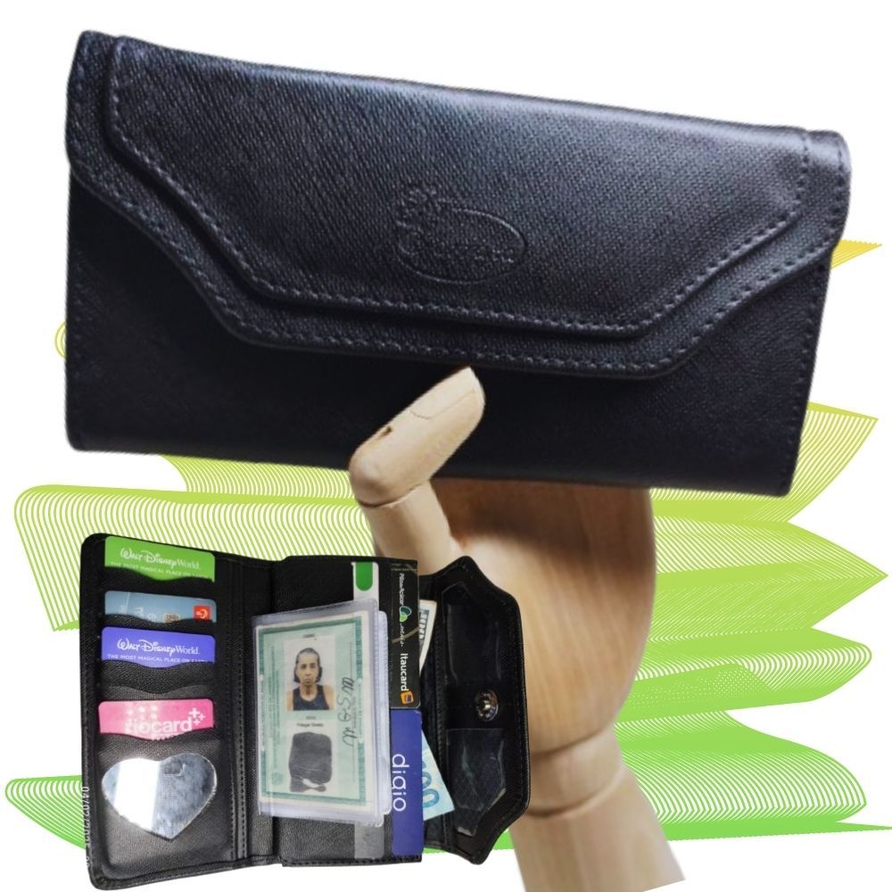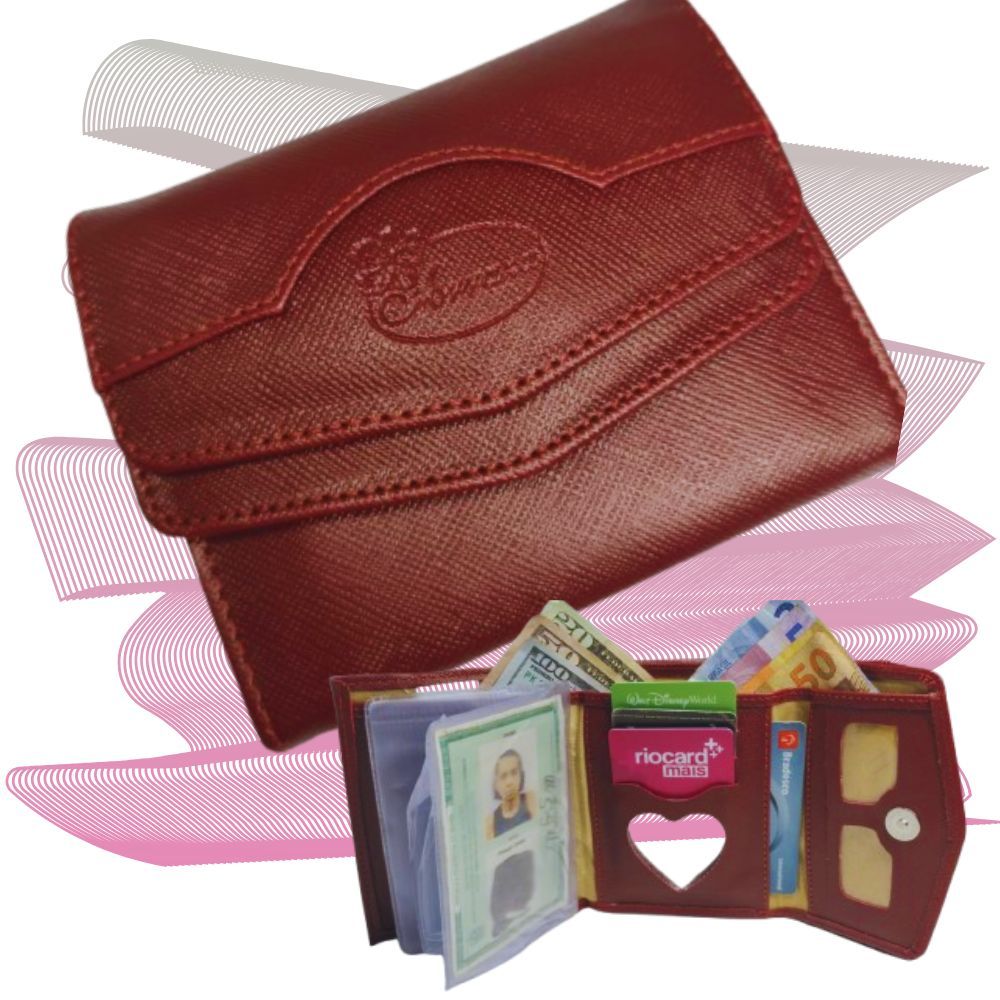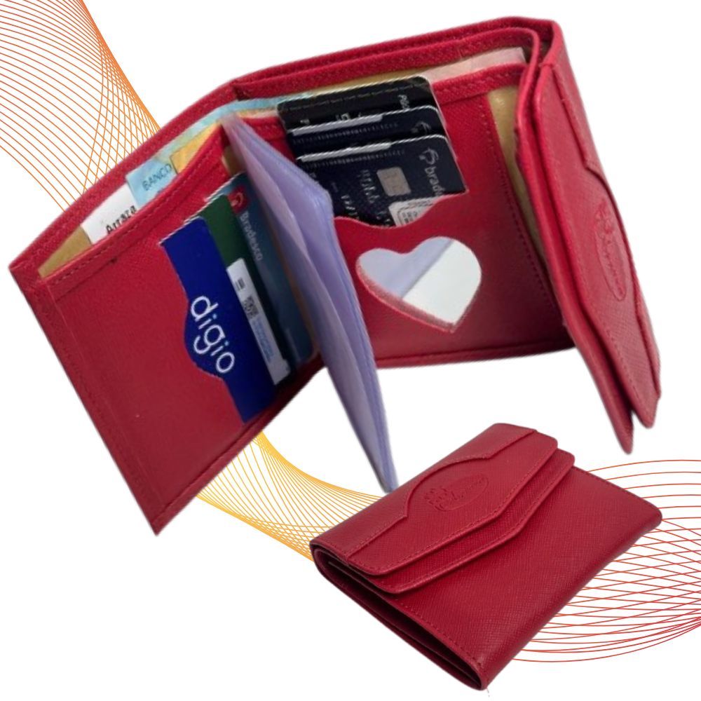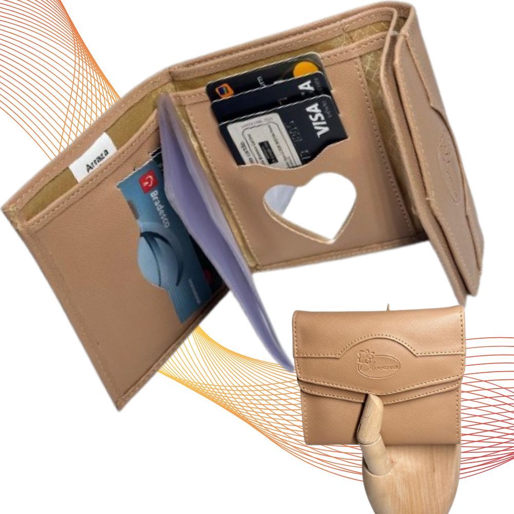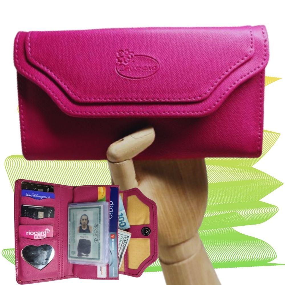 Carteira Feminina com Porta Batom Cartões Dinheiro Documentos Espelho