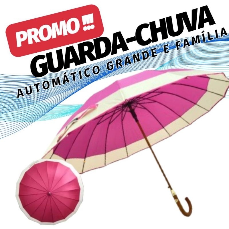 Guarda Chuva Sombrinha Automático Bengala Reforçado Grande 16 Vareta