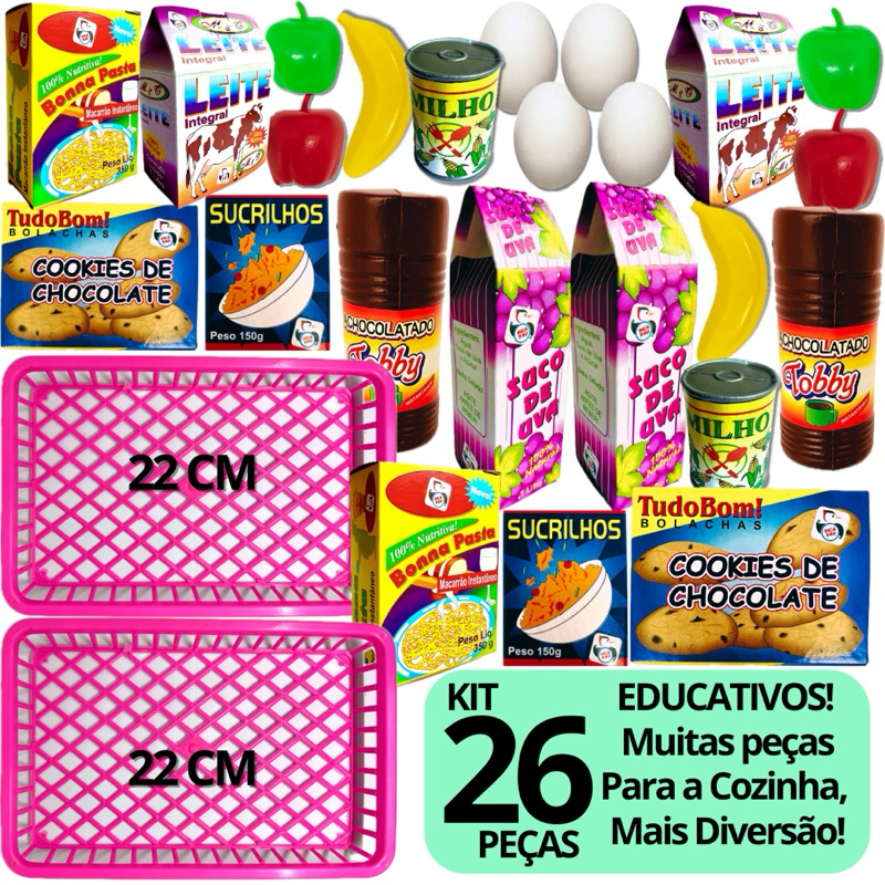 Brinquedos Cozinha Infantil Menina Menino Kit 26 Pcs Comidinha Brinquedo Mercadinho Supermercado
