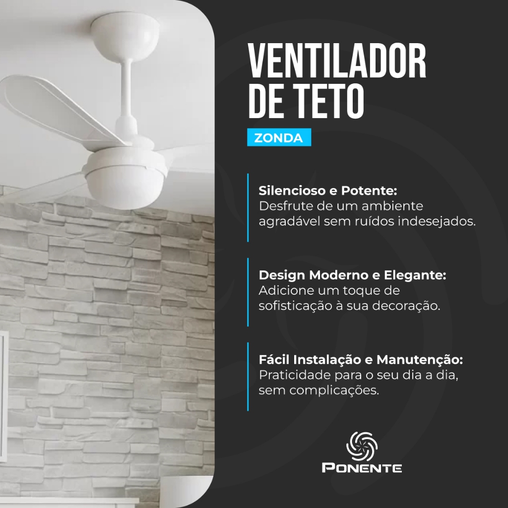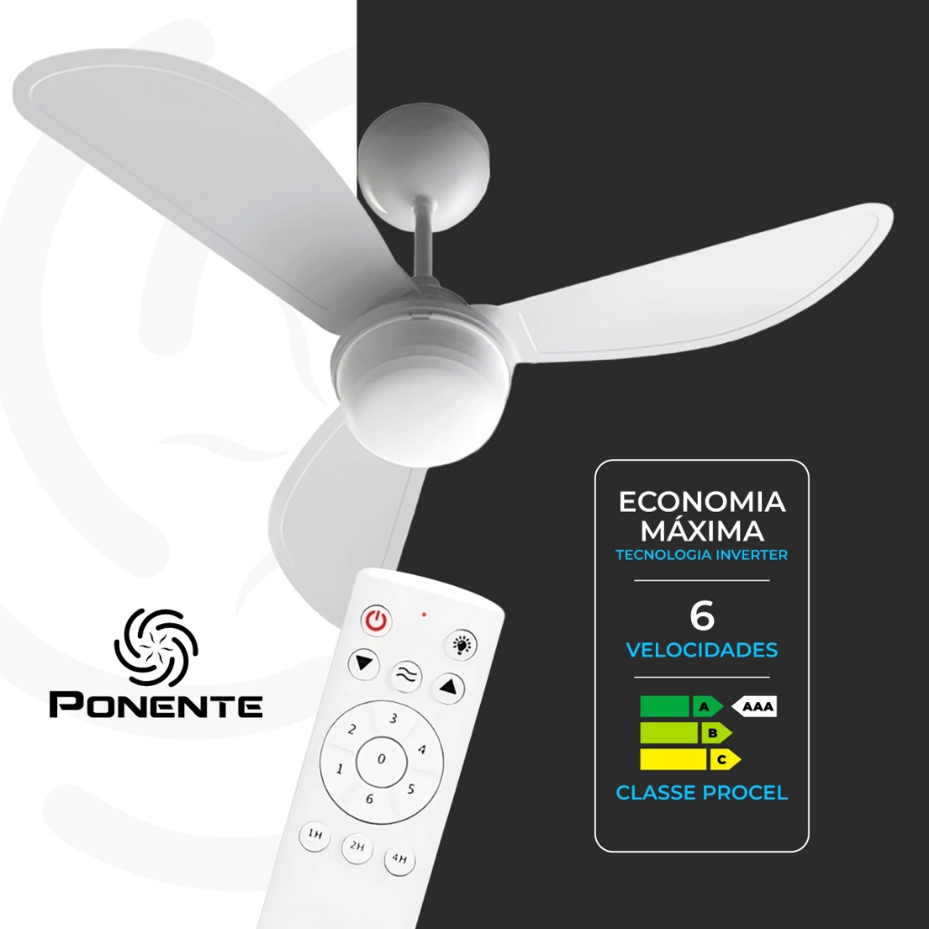 Ventilador de Teto Fast Led Inverter Ponente Bivolt Com Controle Remoto