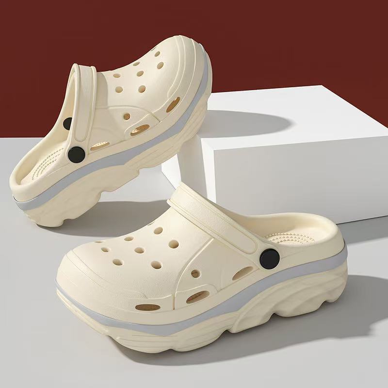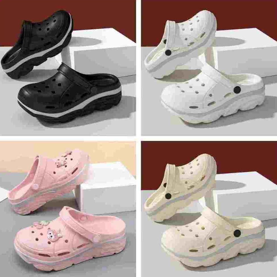 Sapatos Sandálias De Sola Grossa Com Buracos, Chinelos Coreanos De Verão Com Acessórios