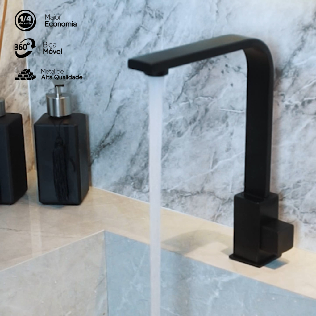 Torneira Lavatório Pia Cuba Banheiro Quadrada Metal Preta