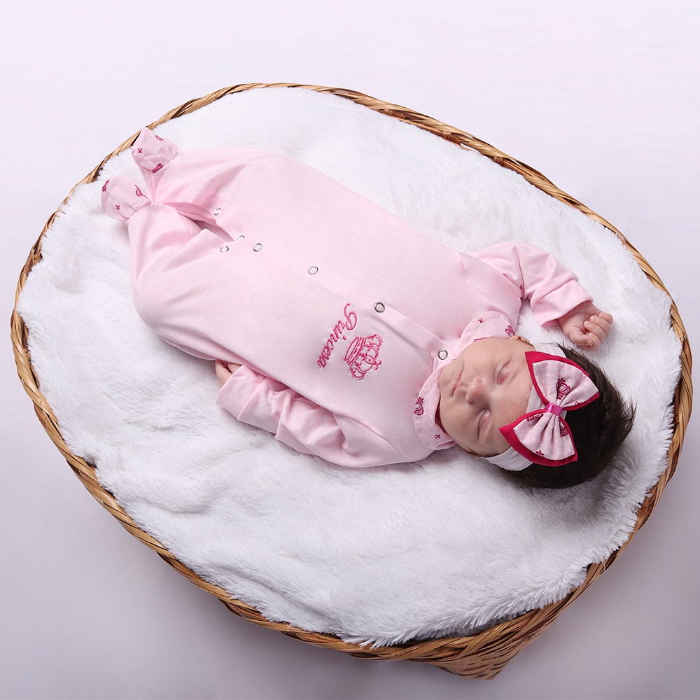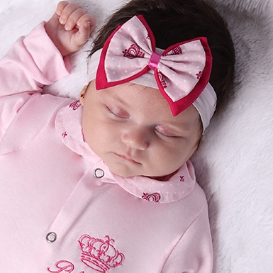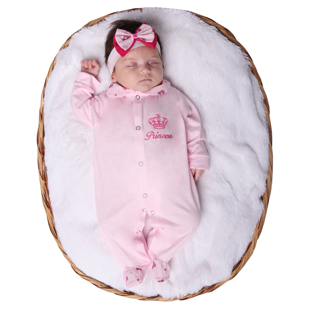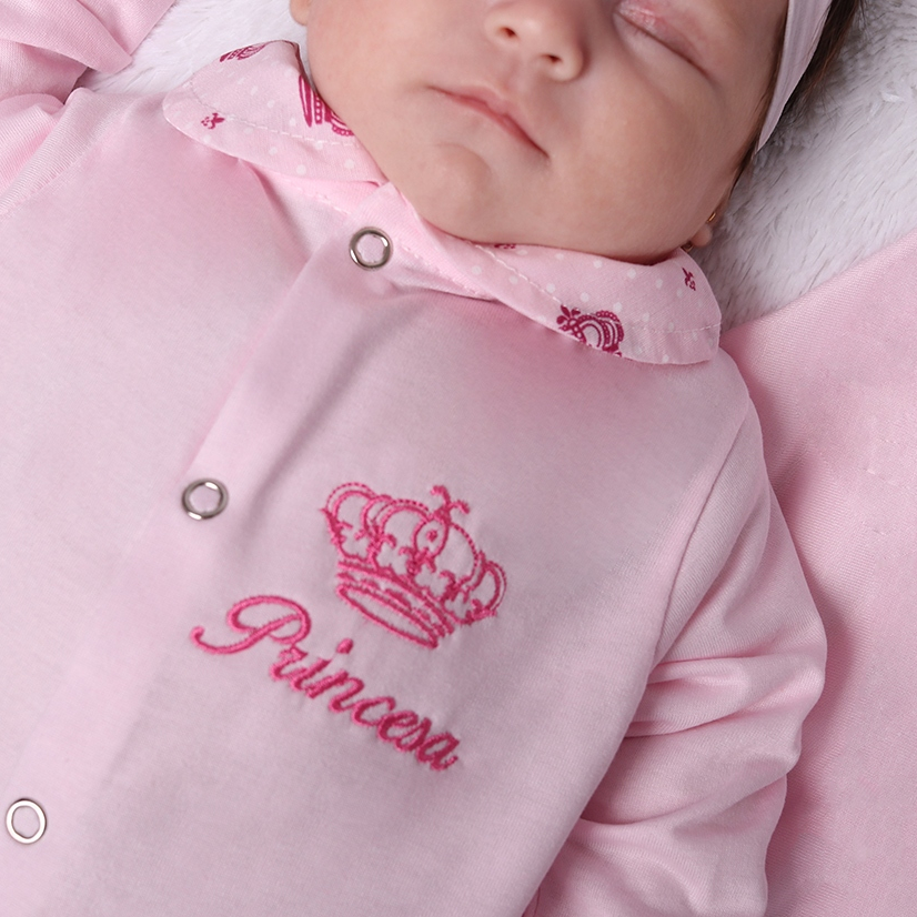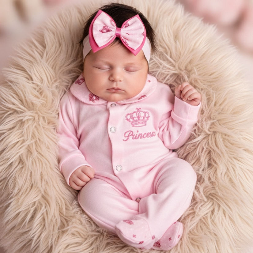 Conjunto Menina 02 Peças Macacão Bordado Princesa Com Faixa De Cabelo Roupa Para Bebê Rosa