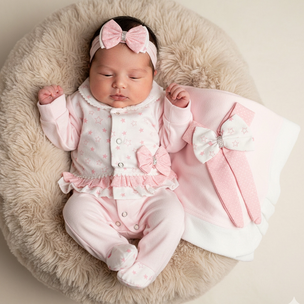 Saída de Maternidade Menina Dudinha Estrela Rosa 04 Peças