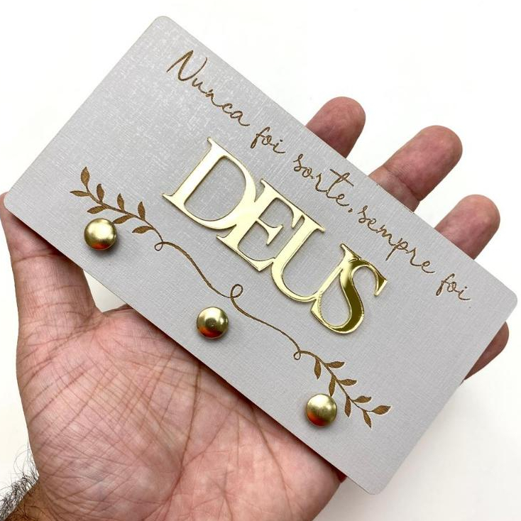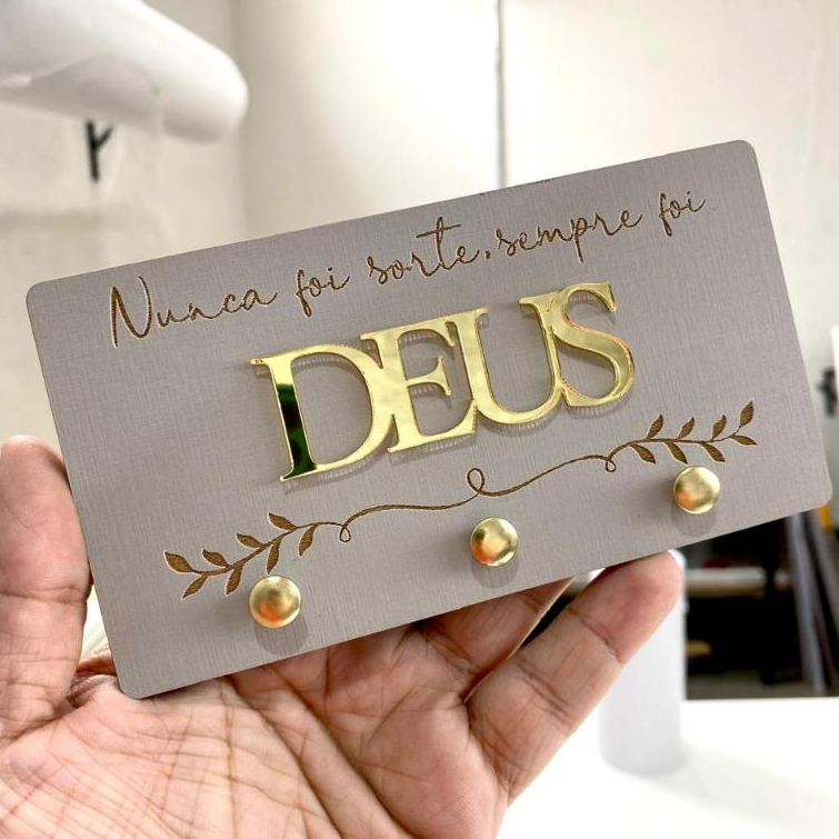 Porta Chave de Madeira 15x8 Escrita DEUS