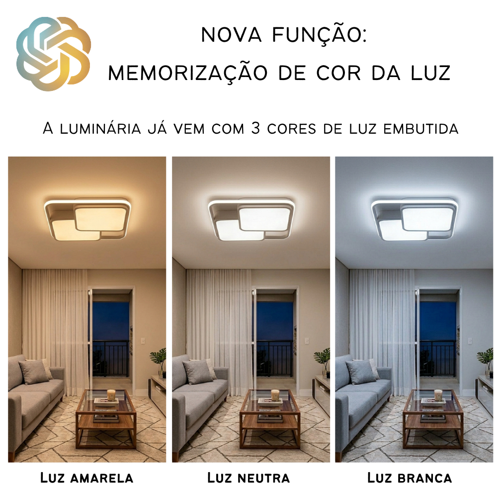 Luminária de LED de sobrepor quadrada Bivolt 32W 3 em 1 com luz central dupla