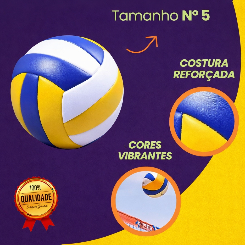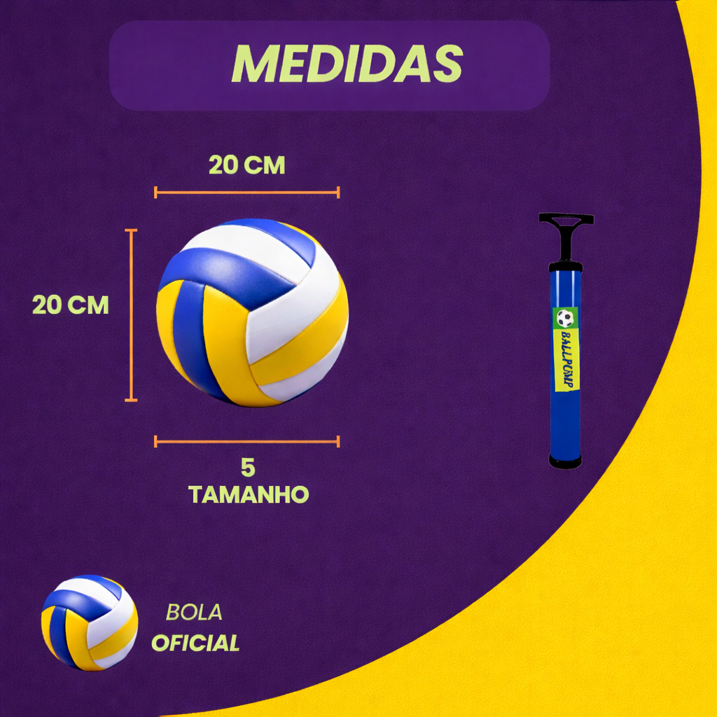 Kit Bola de Vôlei Nº 5 + Bomba de Ar Oficial Voleibol Infantil e Adulto