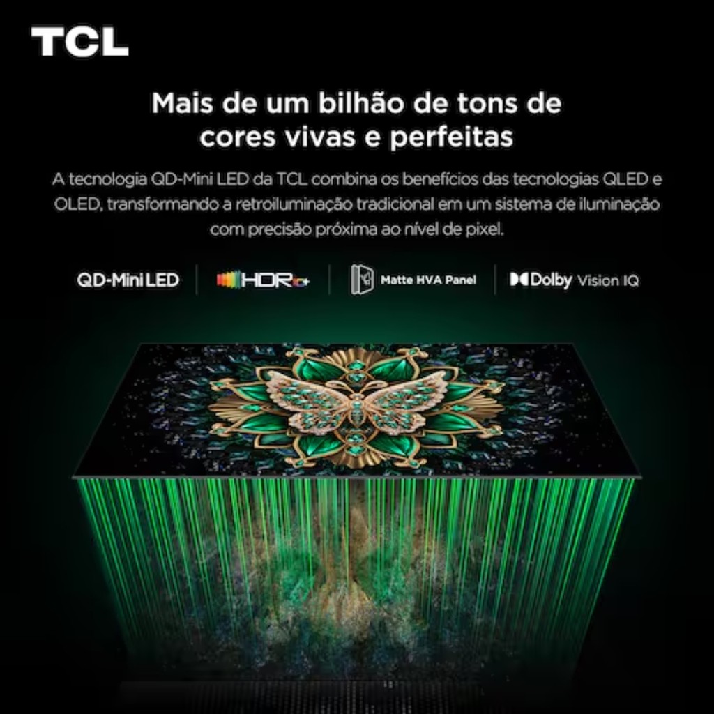 Smart TV 65” TCL 65C6K 4K Ultra HD QD-Mini Led 144Hz Dolby Atmos Sistema Operacional Google TV