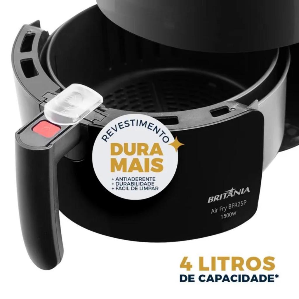 Air Fryer Antiaderente Britânia 3,5L BFR25P 1500W Preta Timer e Controle de Temperatura 127V