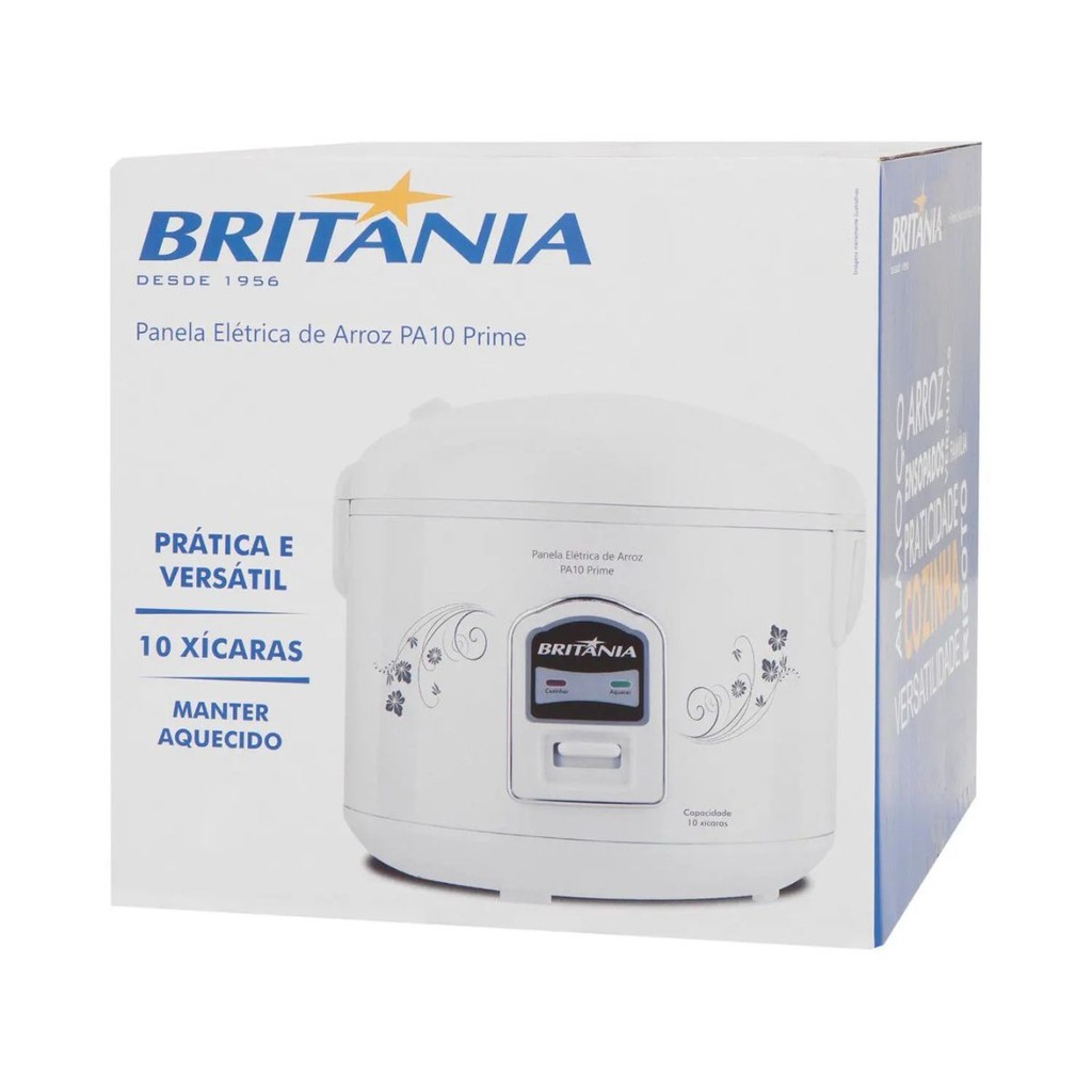 Panela Elétrica de Arroz Britânia PA10 Prime 700W Branca 10 Xícaras 110V