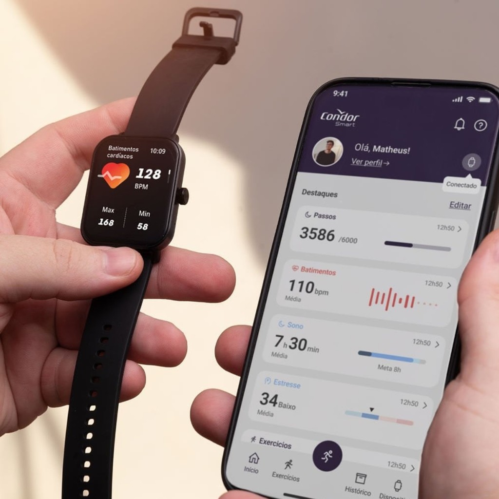 Relógio Smartwatch Condor Unissex Bluetooth Chamadas Preto Caixa em Resina
