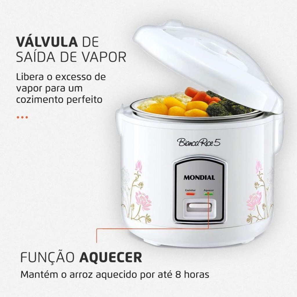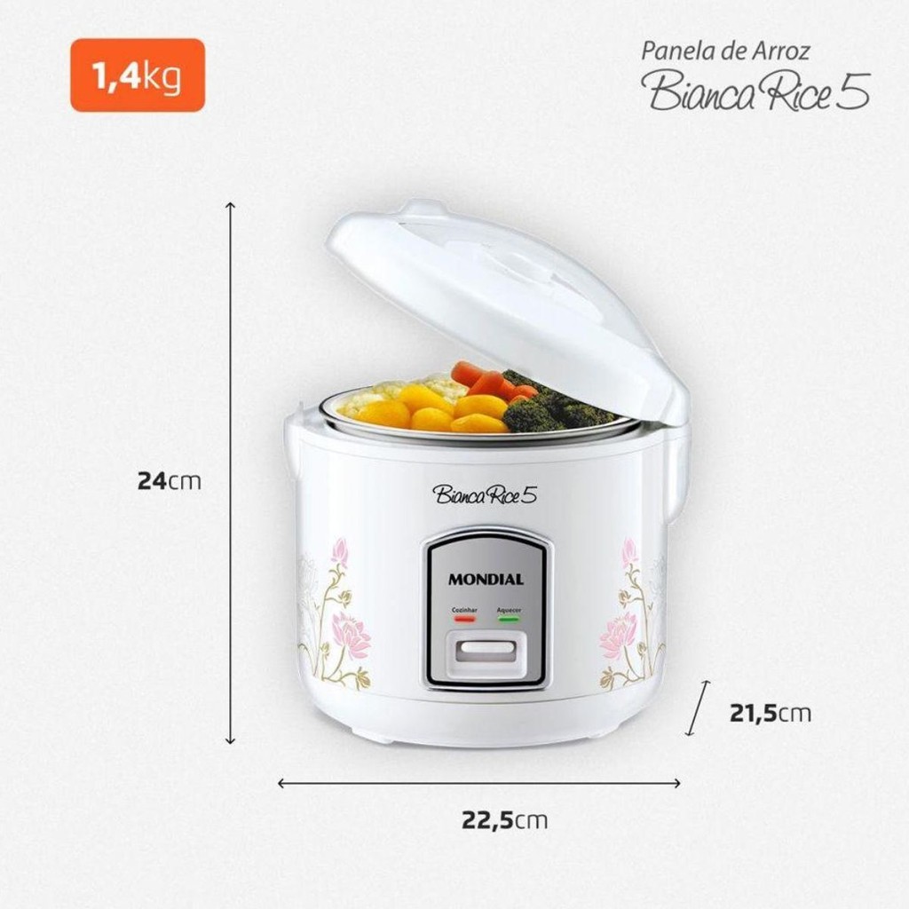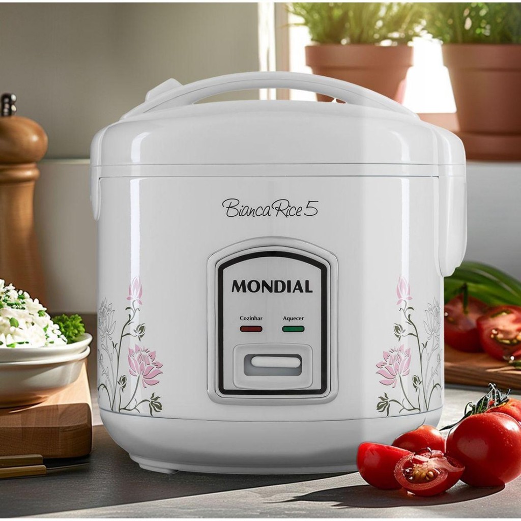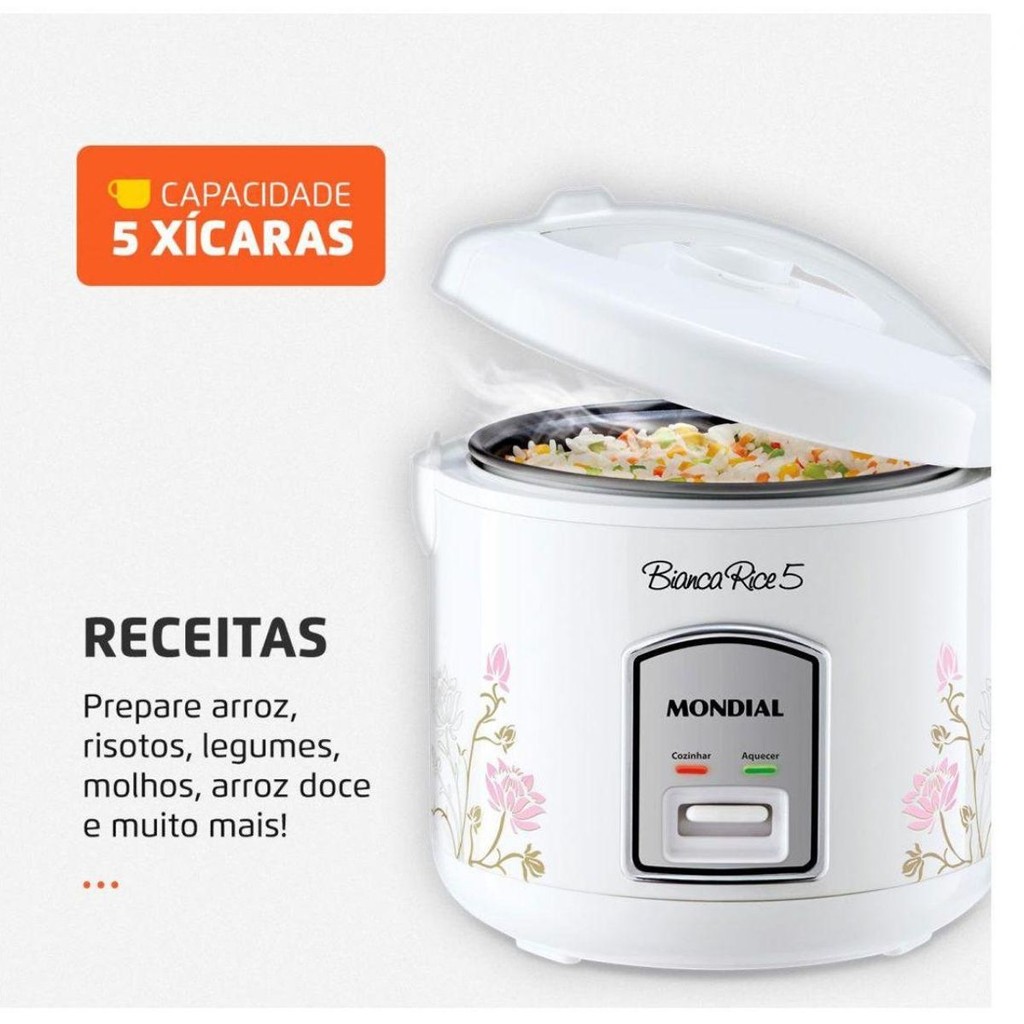 Panela de Arroz Elétrica Mondial Bianca Rice 400W 127v Branca 5 Xícaras Panela Antiaderente