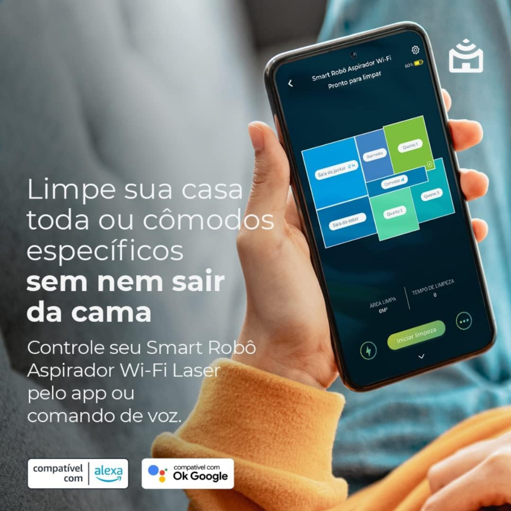 Smart Robô Aspirador Wi-Fi Laser Positivo PRA1000 Varrer Aspirar e Passar Pano Wi-Fi