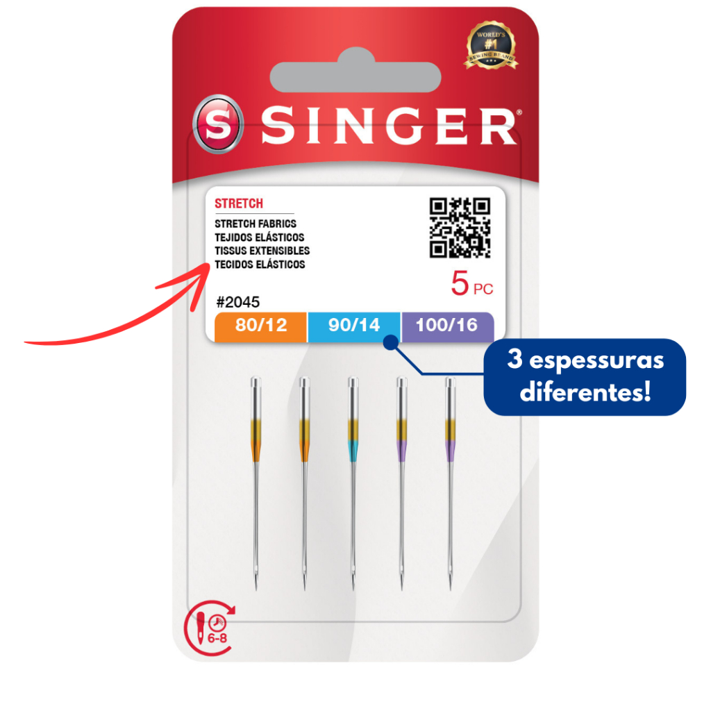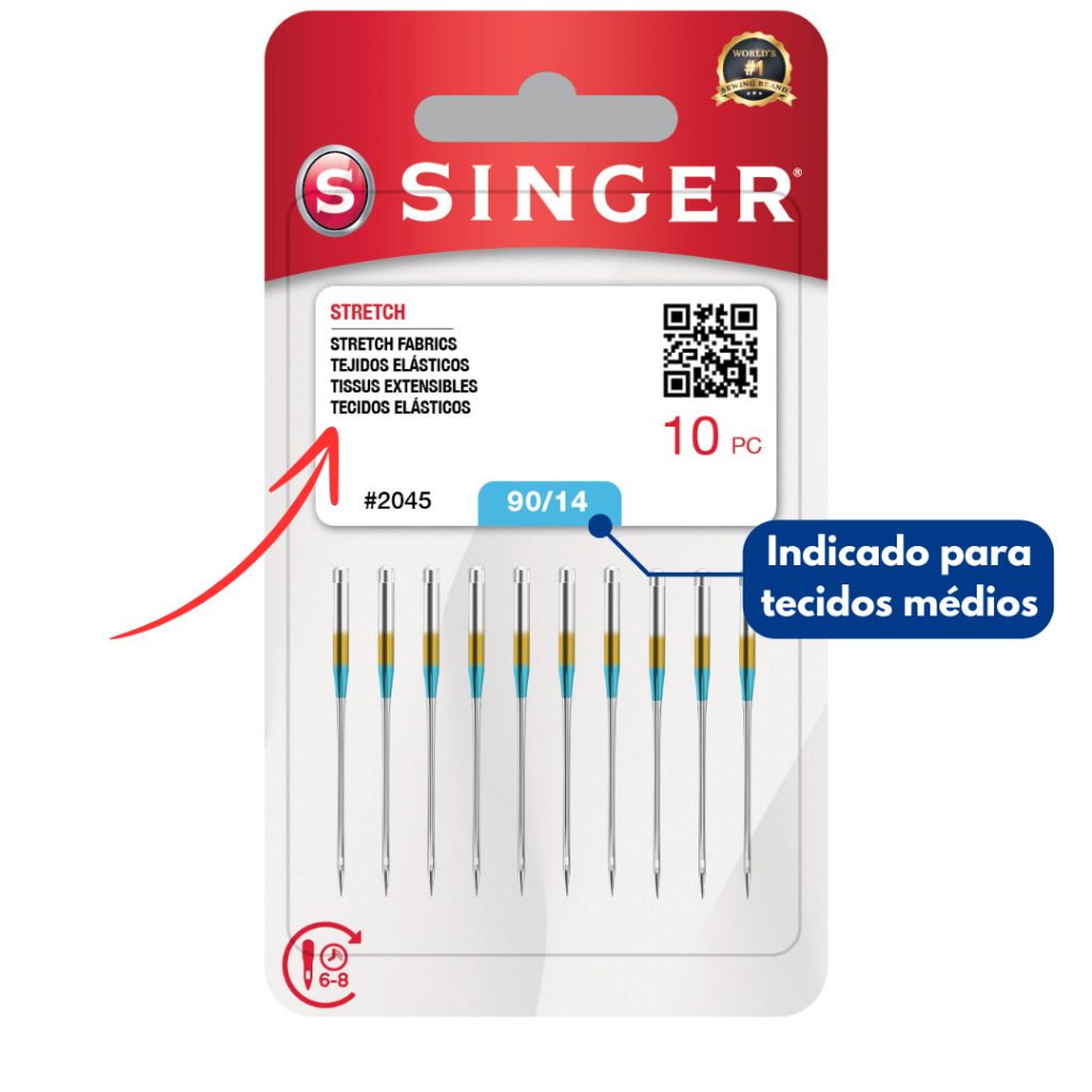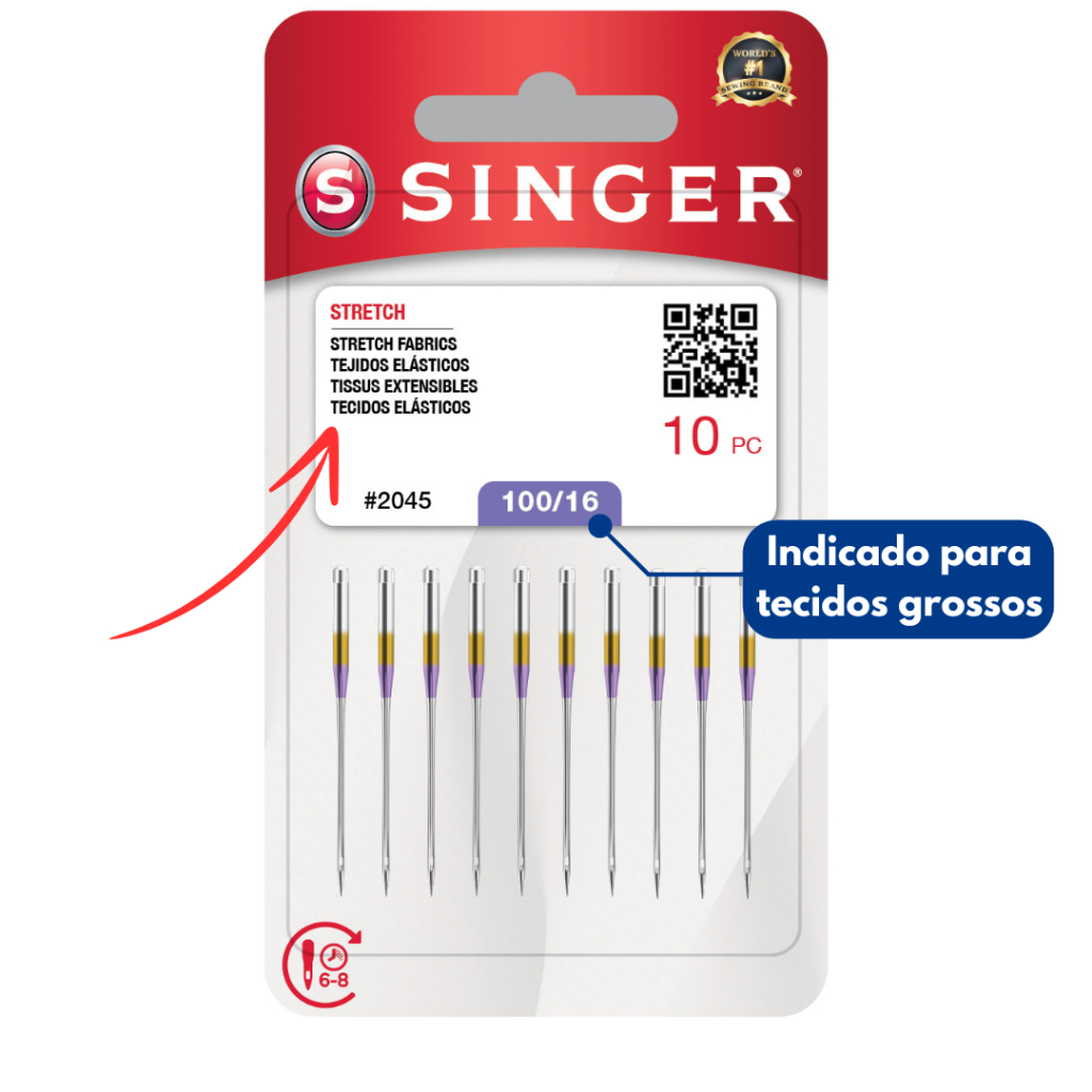 Agulha Singer 2045 Ponta Bola - costura malha e tecidos elásticos - máquina doméstica caseira