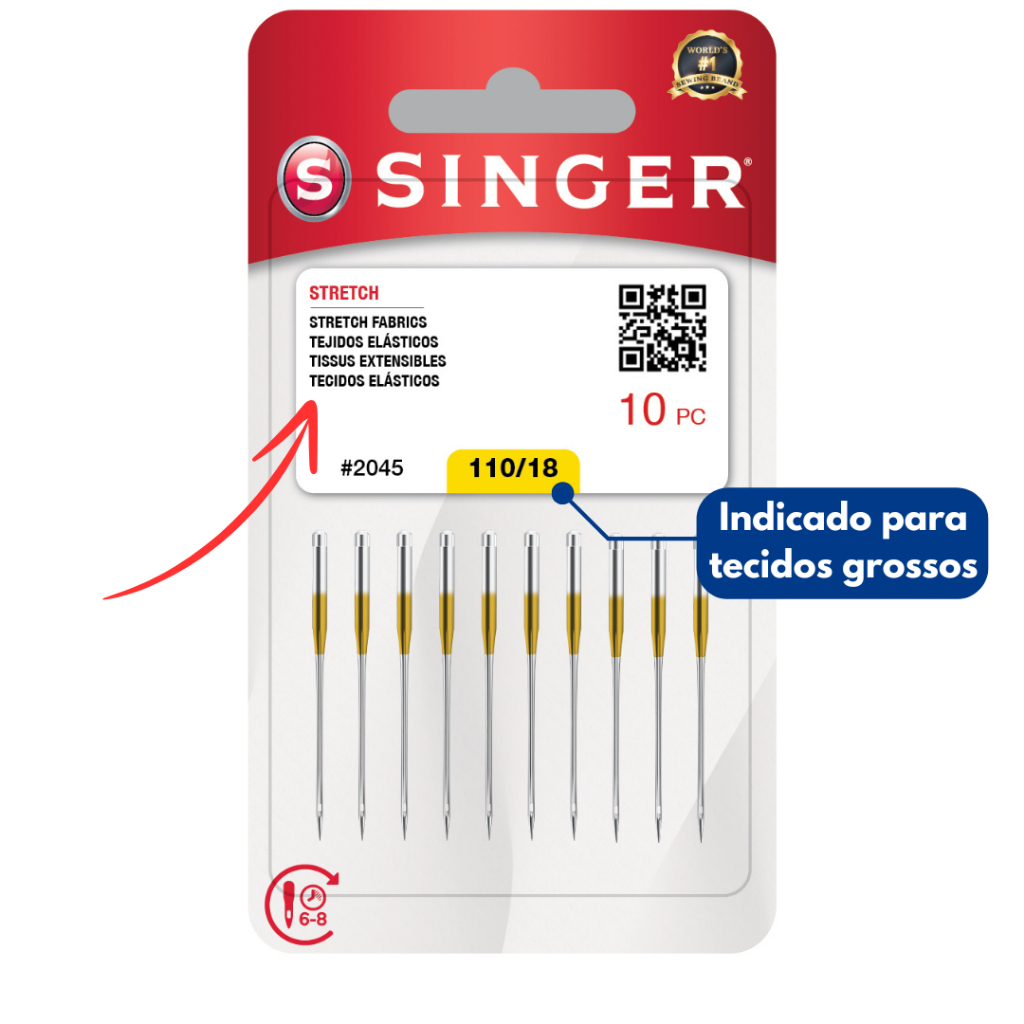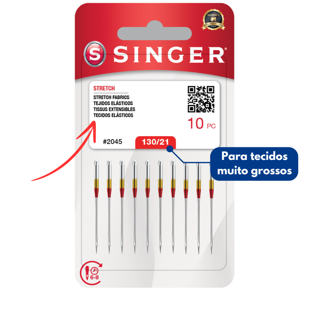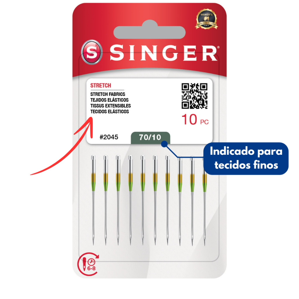 Agulha Singer 2045 Ponta Bola - costura malha e tecidos elásticos - máquina doméstica caseira