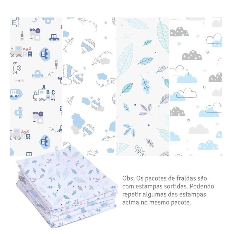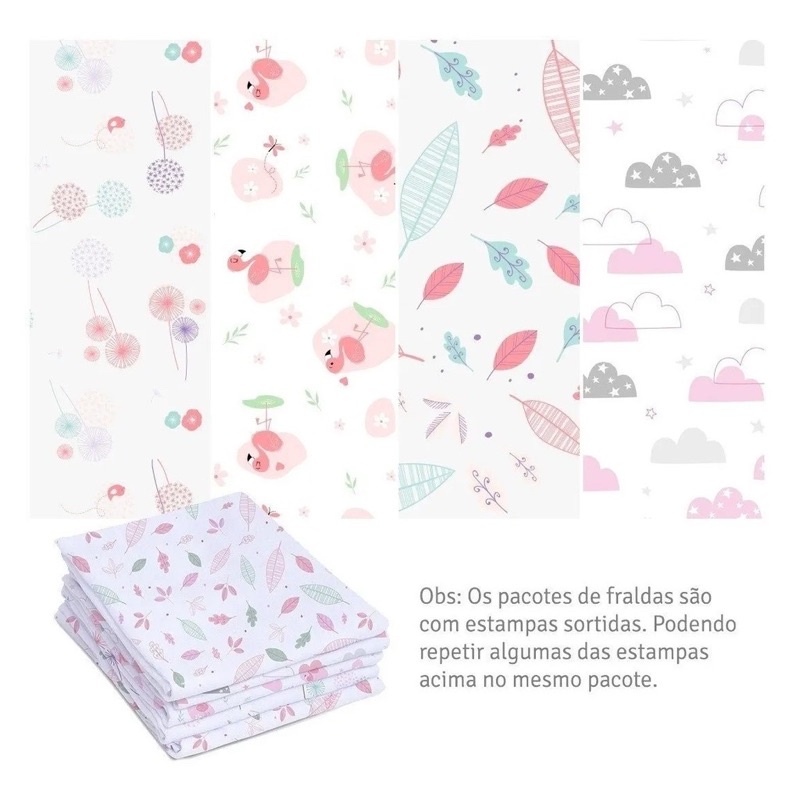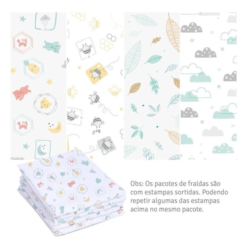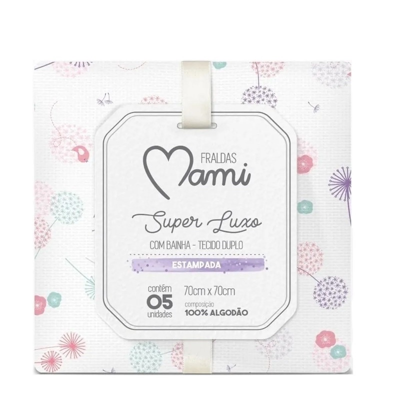 Fralda Com Bainha Tecido Duplo Super Luxo 100% Algodão 70x70cm Mami c/ 5 Unidades