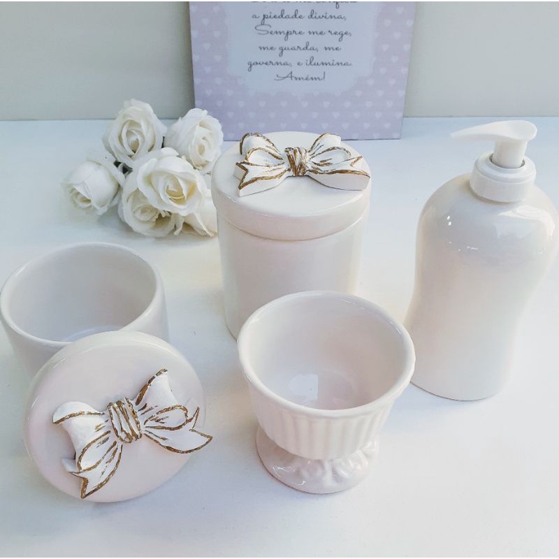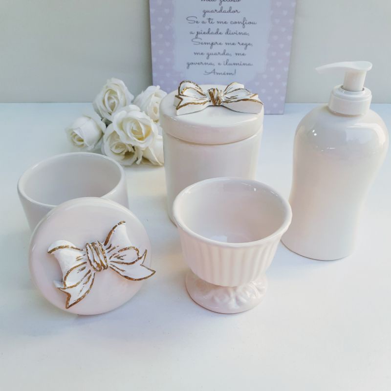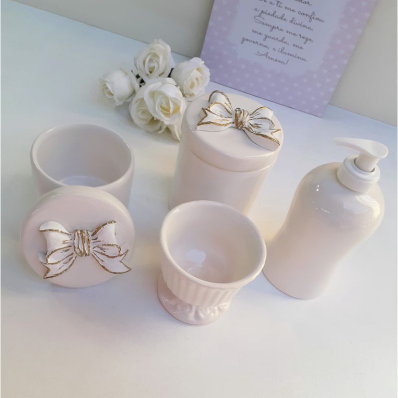kit higiene bebê porcelana laço