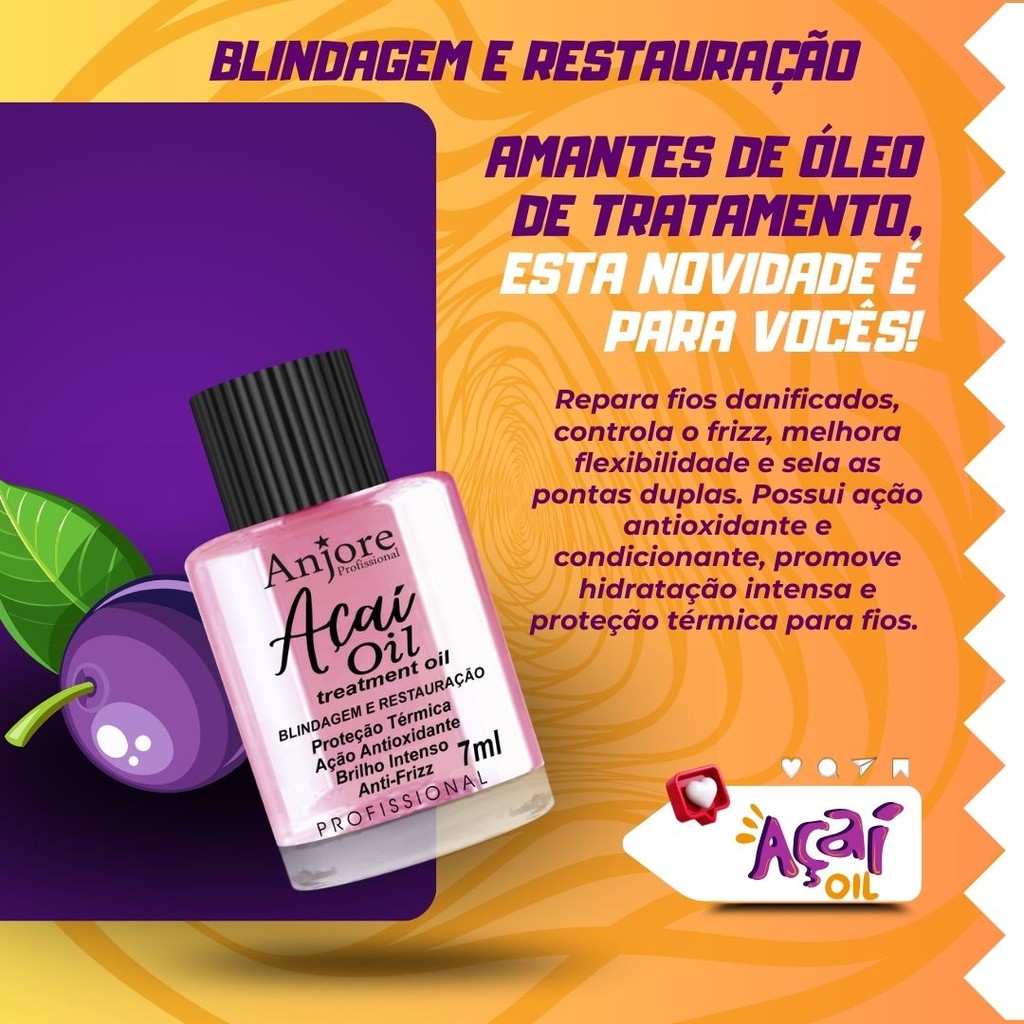 Kit Combo Atacado 6 Óleo De Açaí Blindagem e Restauração 7ml Anjore Reparador de Pontas e Anti Frizz