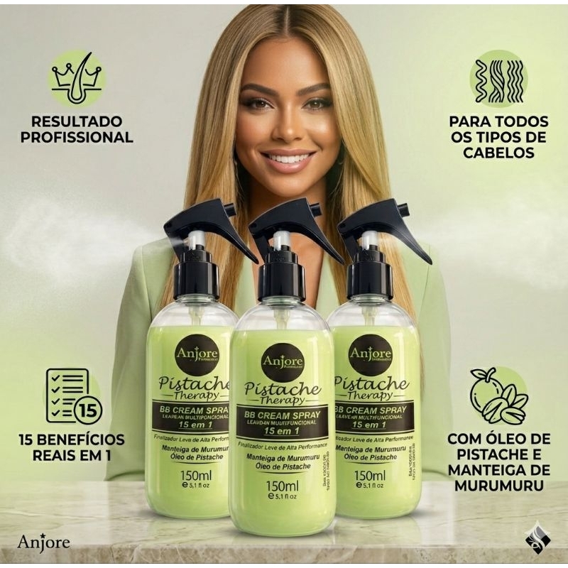 Kit Atacado 6 BB Cream Leavein Multifuncional 150ml 6 Óleo Supreme Oil 30ml Pistache Therapy Anjore