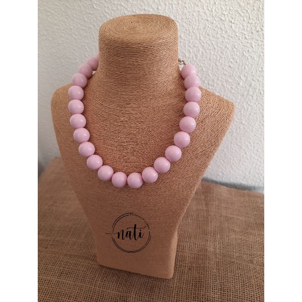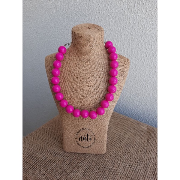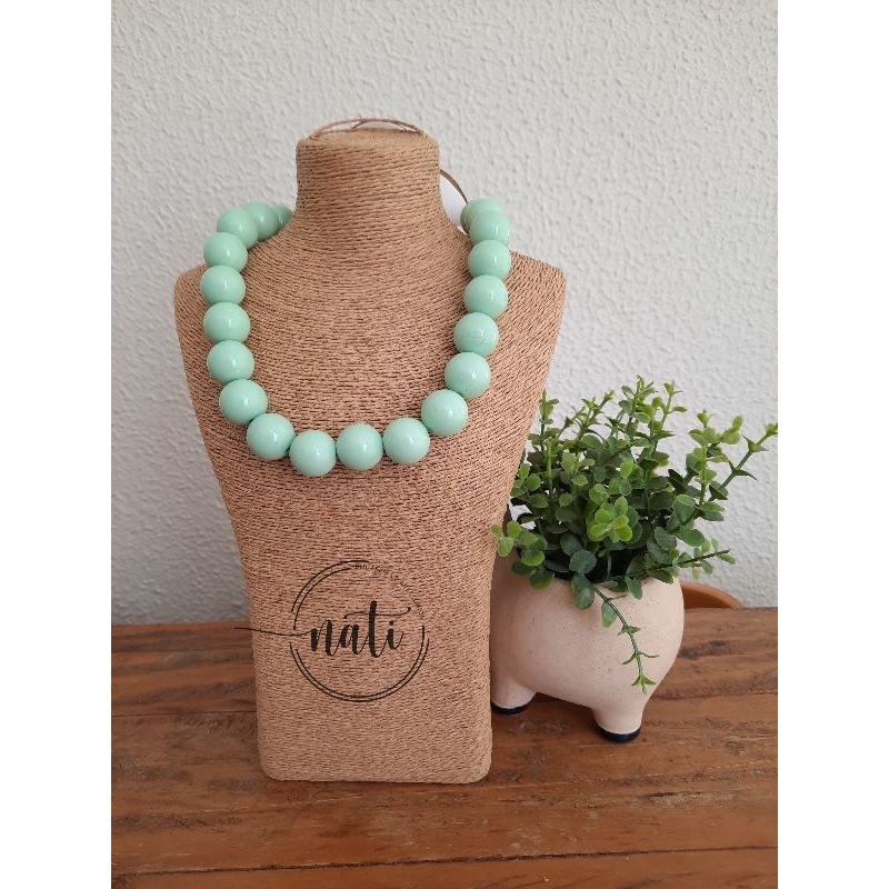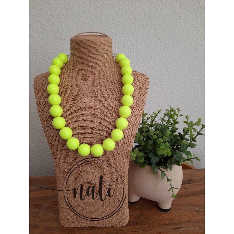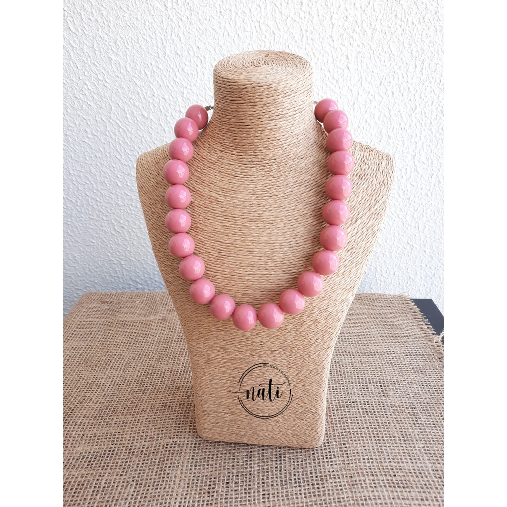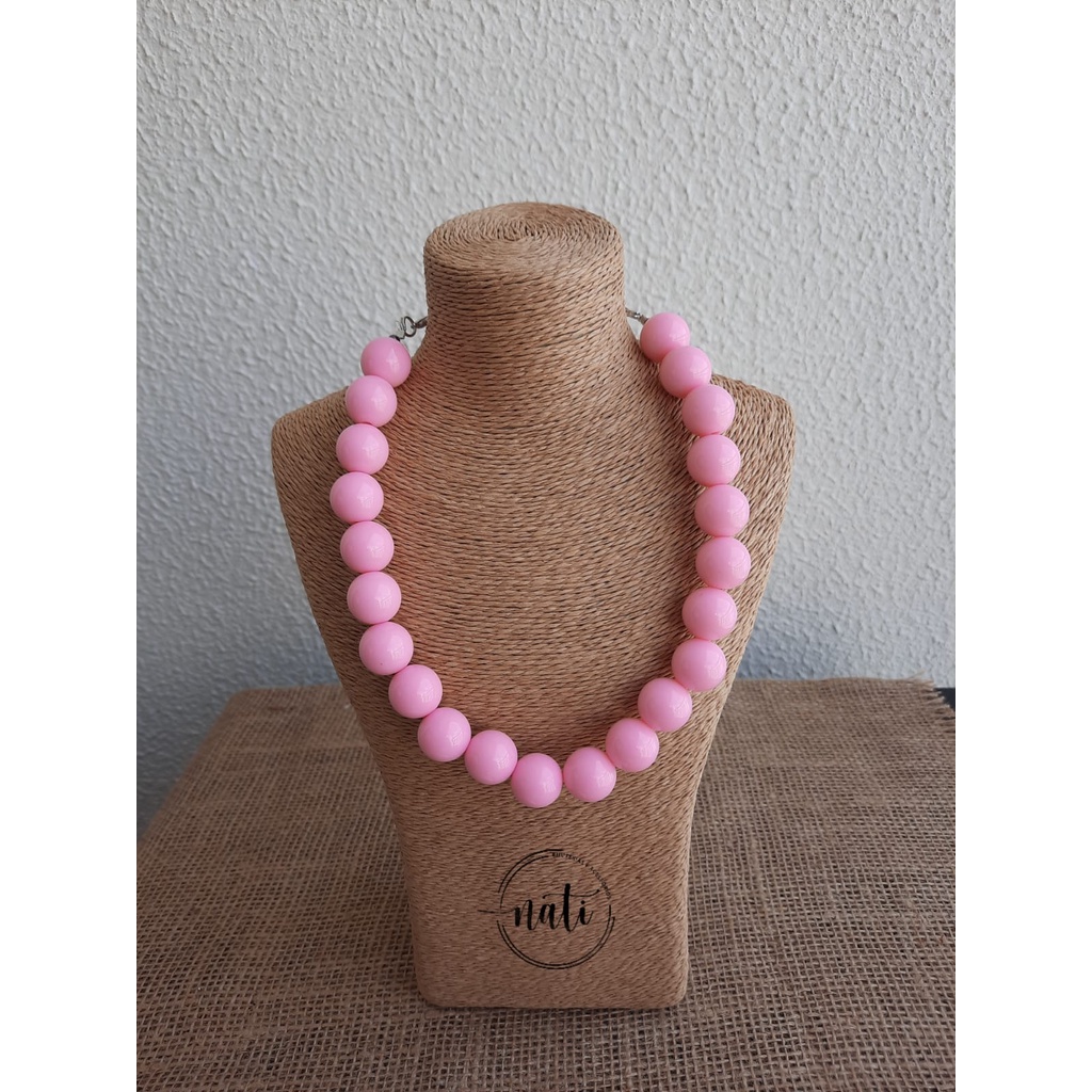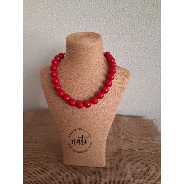 Colar Bolas Resina Choker Esferas Vermelho Colorido Feminino One Piece