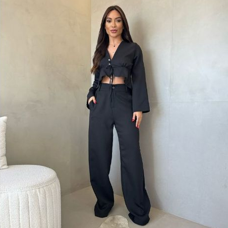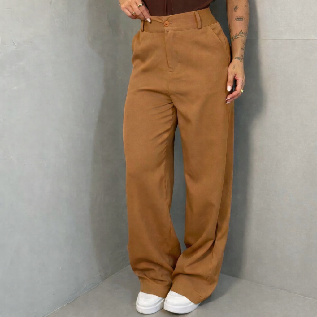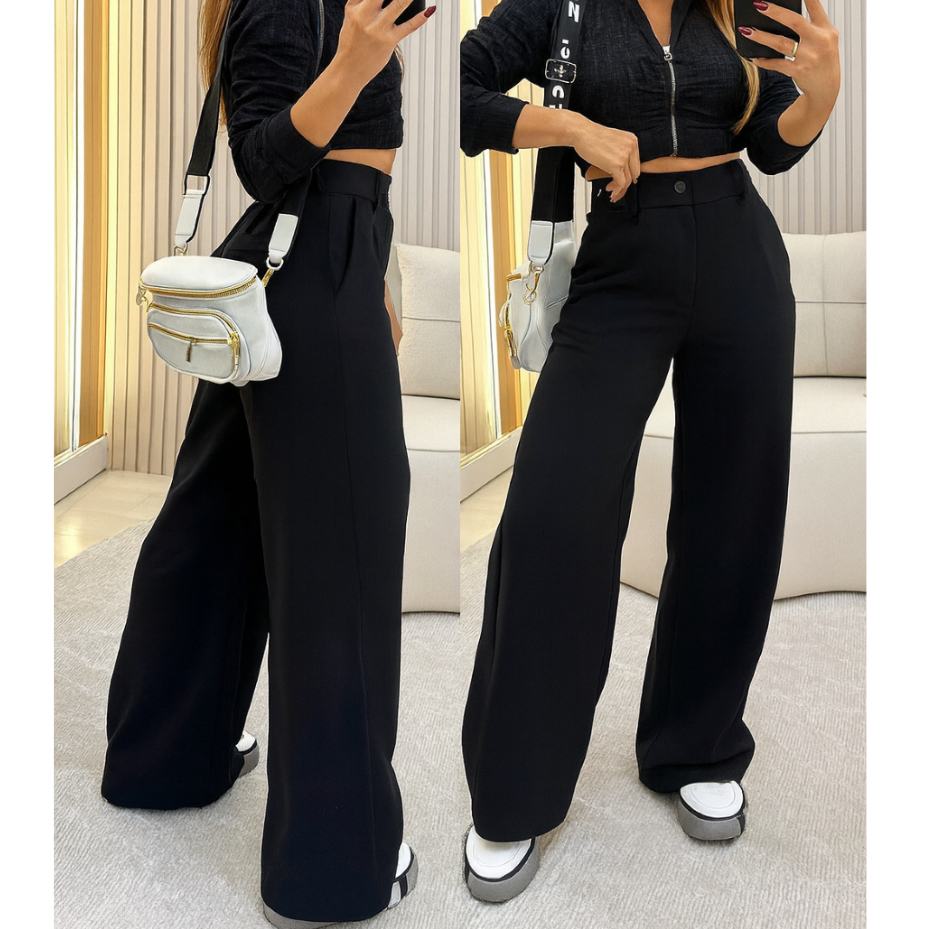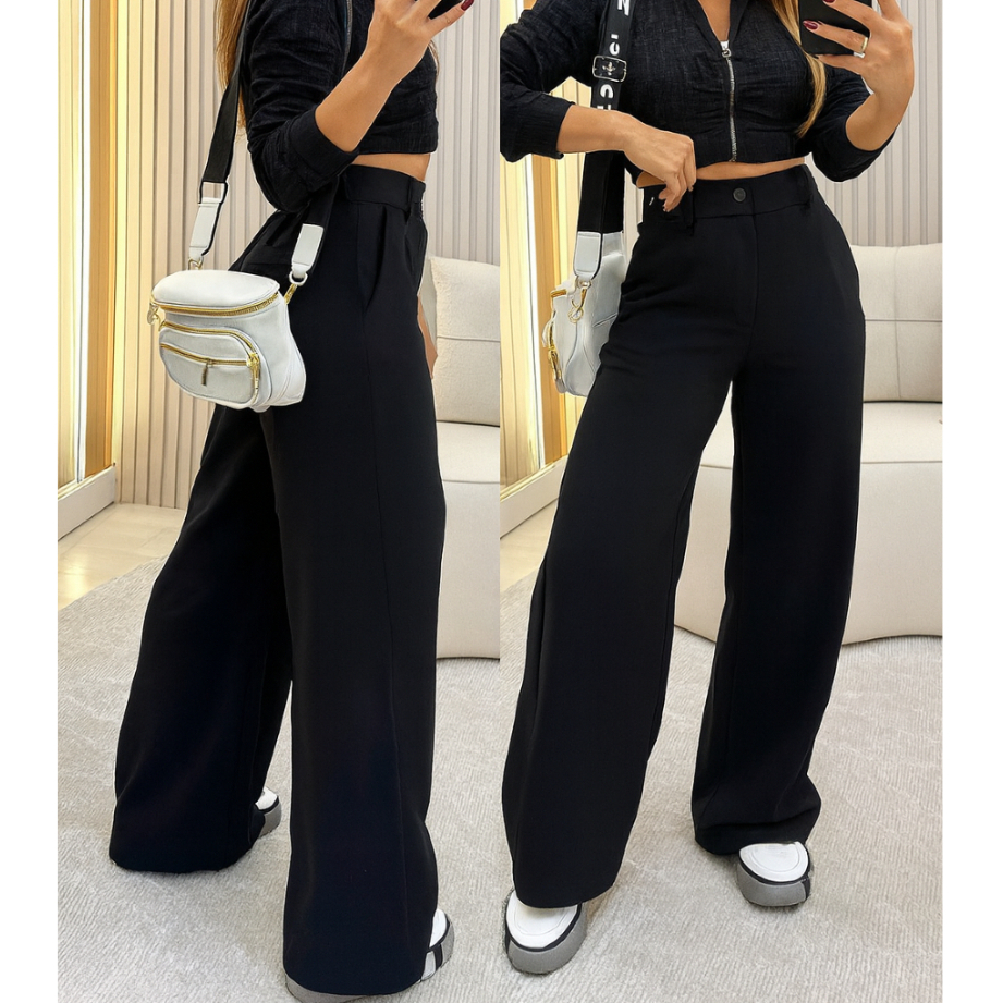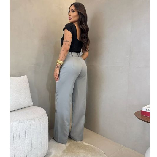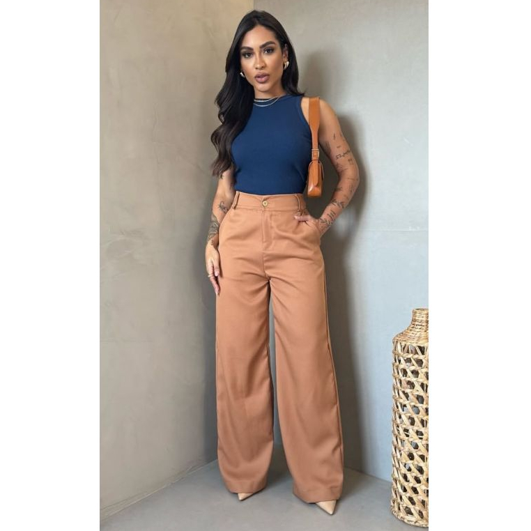 Calça Pantalona Feminina Alfaiataria Wide Leg Tendência Promoção