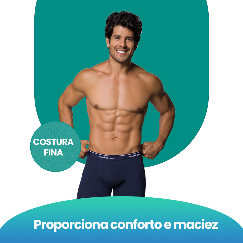 2 Cuecas Boxer Adulto Box Selene Com Em Algodão Com Elastano Com Cós Em Elástico