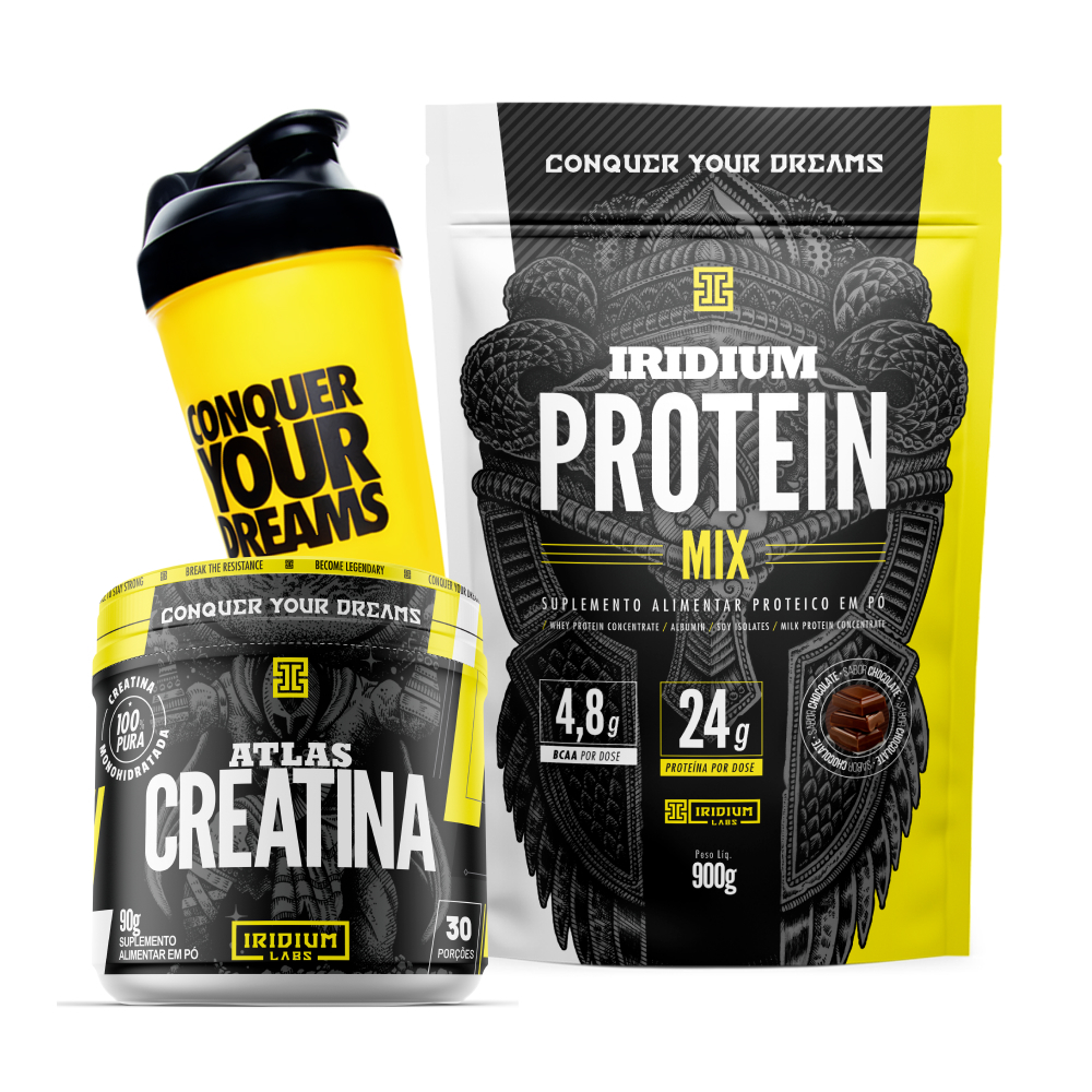Kit Whey Protein mix + Creatina 90g + Coqueteleira 600ml - Iridium Labs