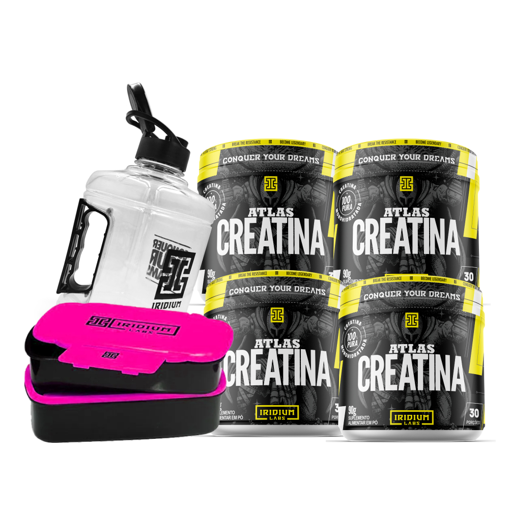 Kit 4x Creatina 90g + Marmiteira + Galão 1,5L - Iridium Labs