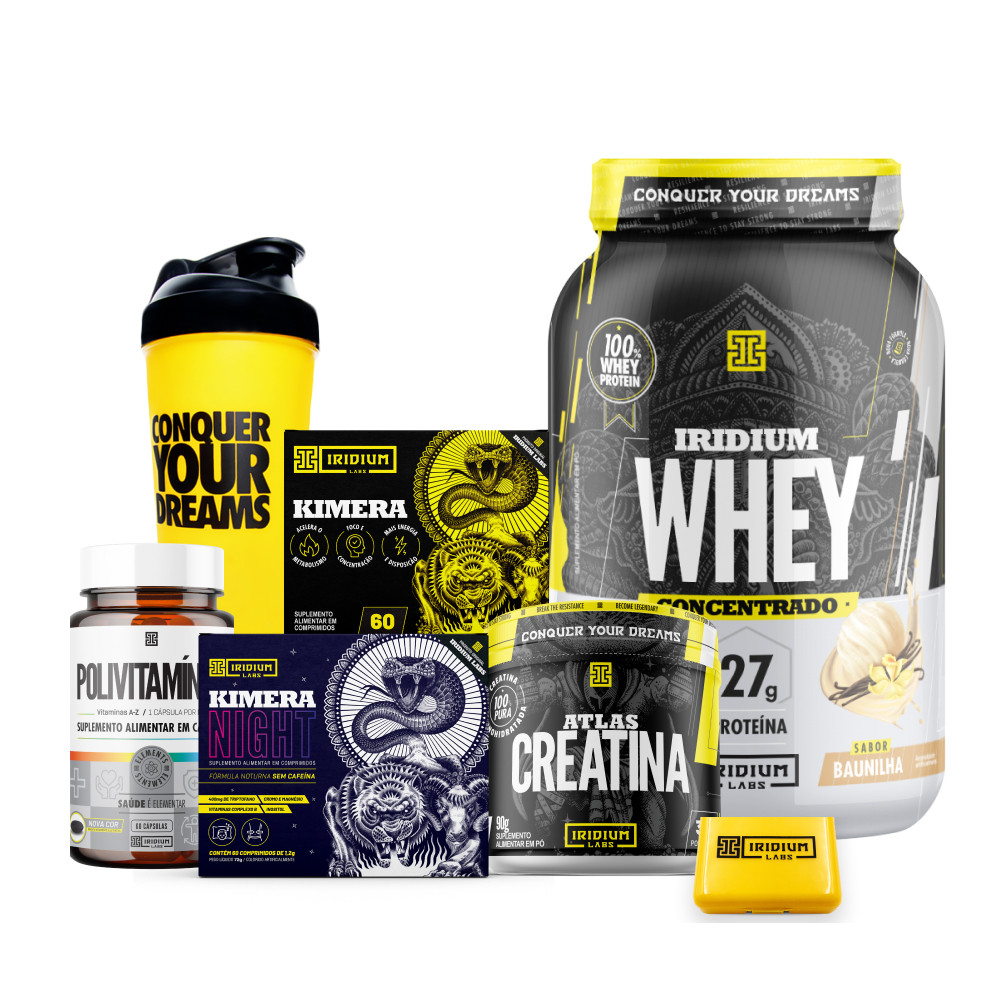 Whey Protein + Creatina 90g + Kimera Thermo + Kimera Night + Polivitaminico Elements 60comps + Coqueteleira + Porta Caps