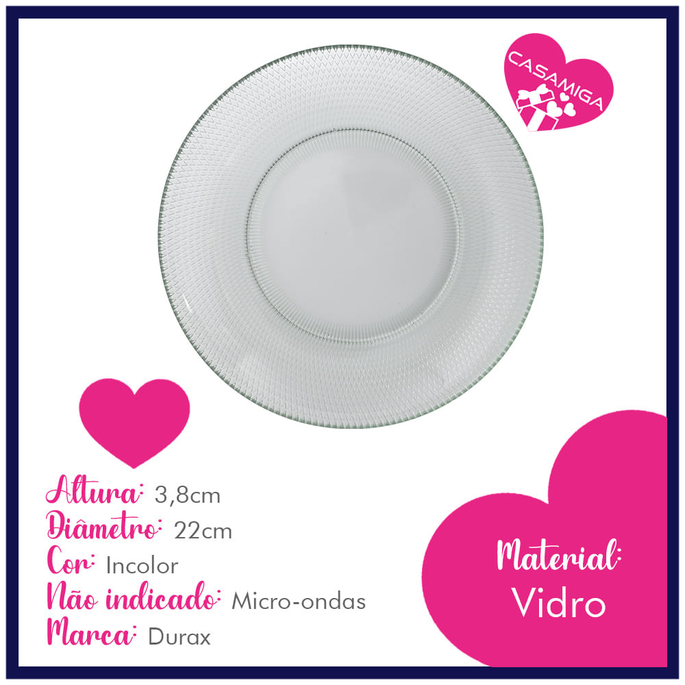 Conjunto 6 Pratos Fundo Vidro Transparente Gema