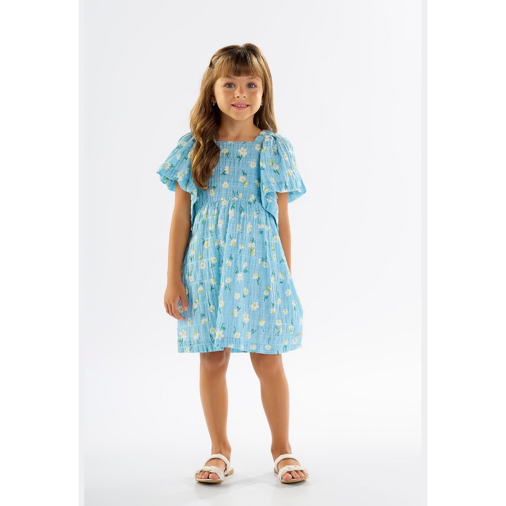 Vestido Infantil Floral em Algodão e Elastano Up Baby