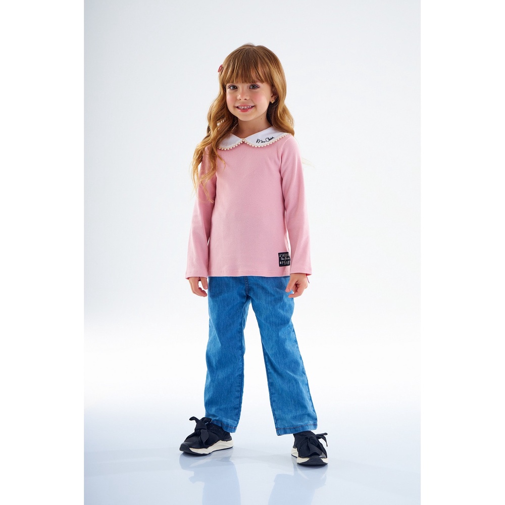 Blusa Manga Longa em Ribana Infantil para Menina Up Baby