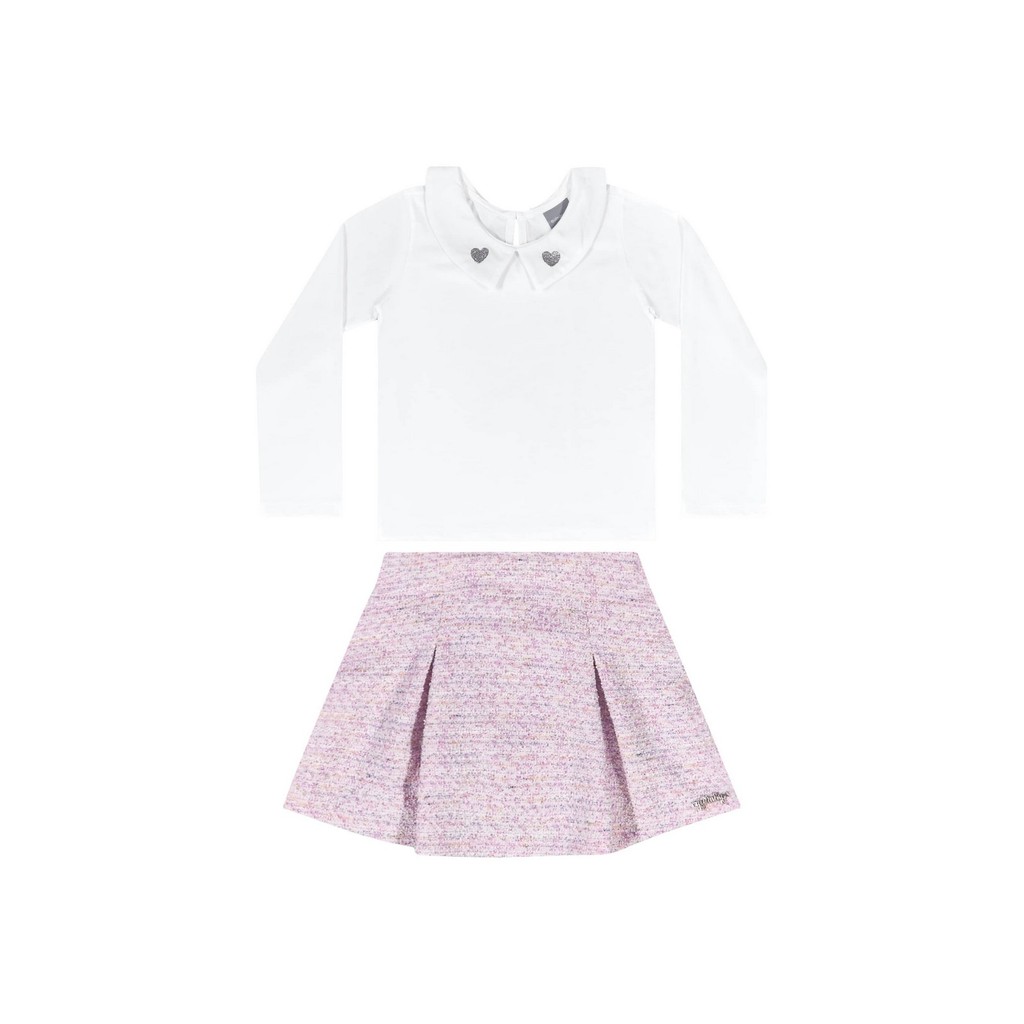Conjunto com Blusa Manga Longa e Short-Saia para Menina Quimby