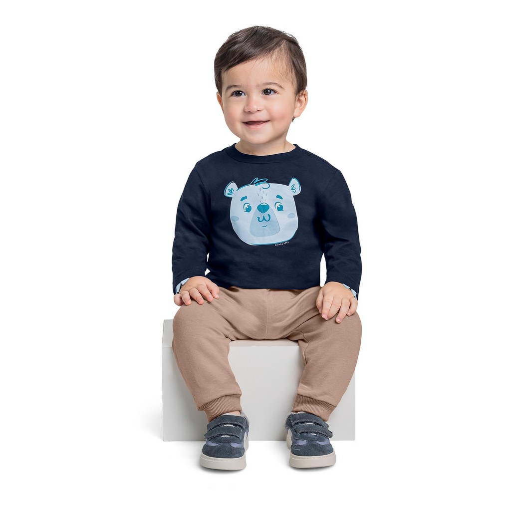 Camiseta Manga Longa de Ursinho para Bebê Menino Quimby