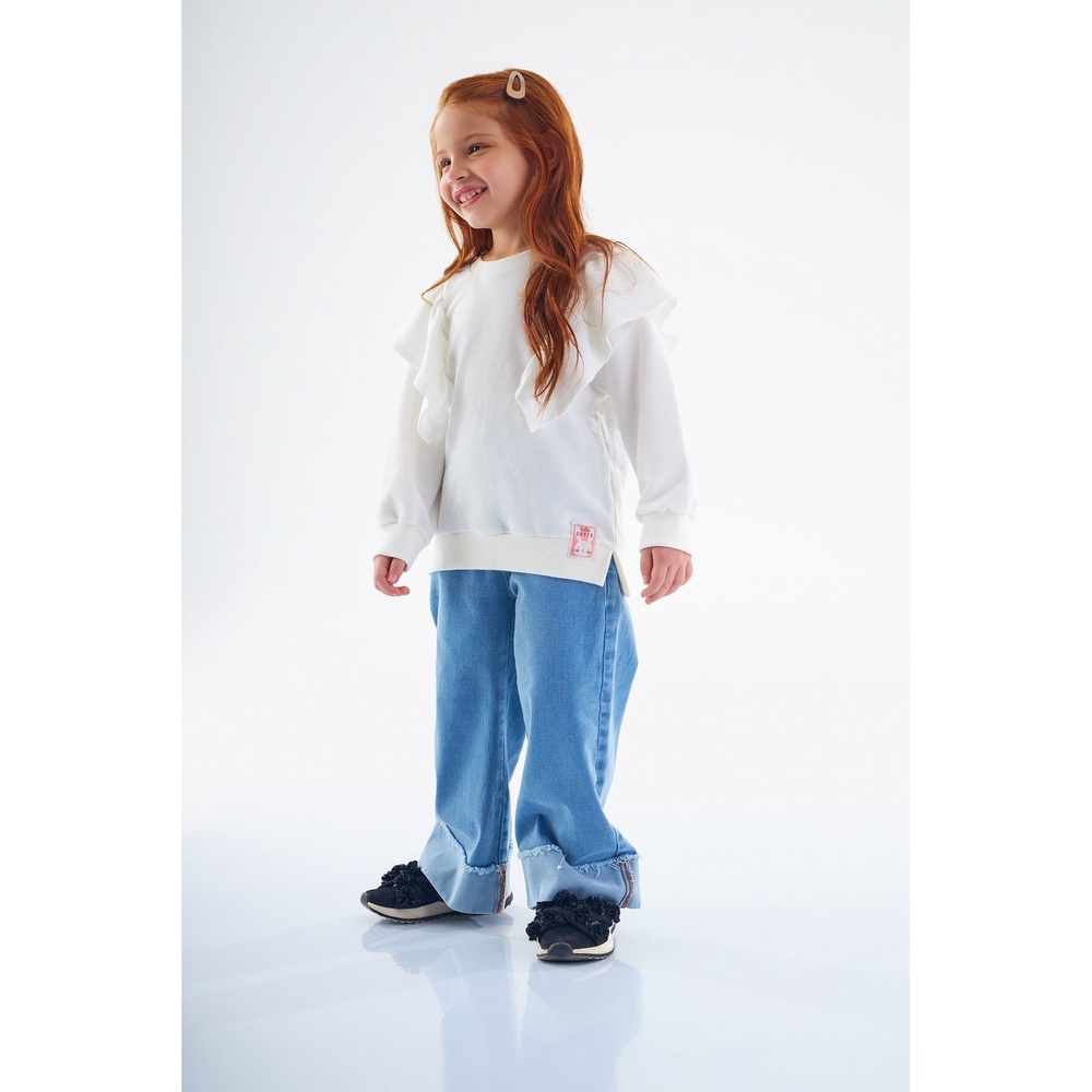 Blusão em Moletom com Babado Infantil para Meninas Up Baby